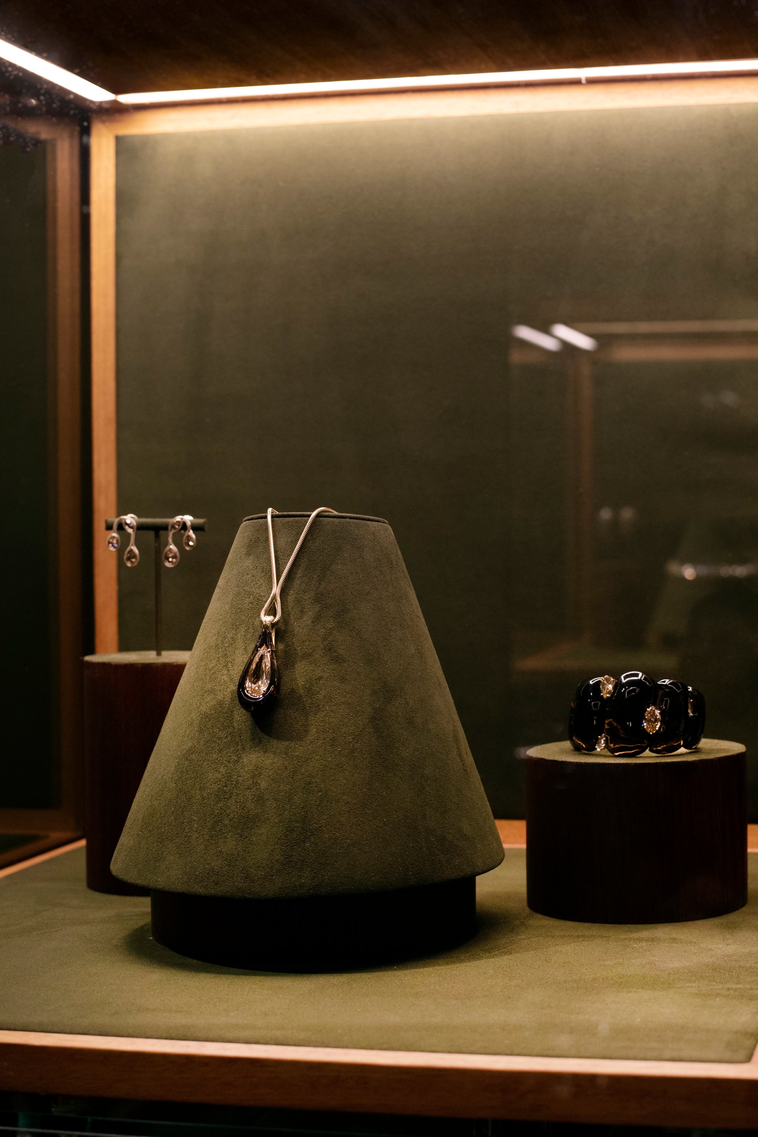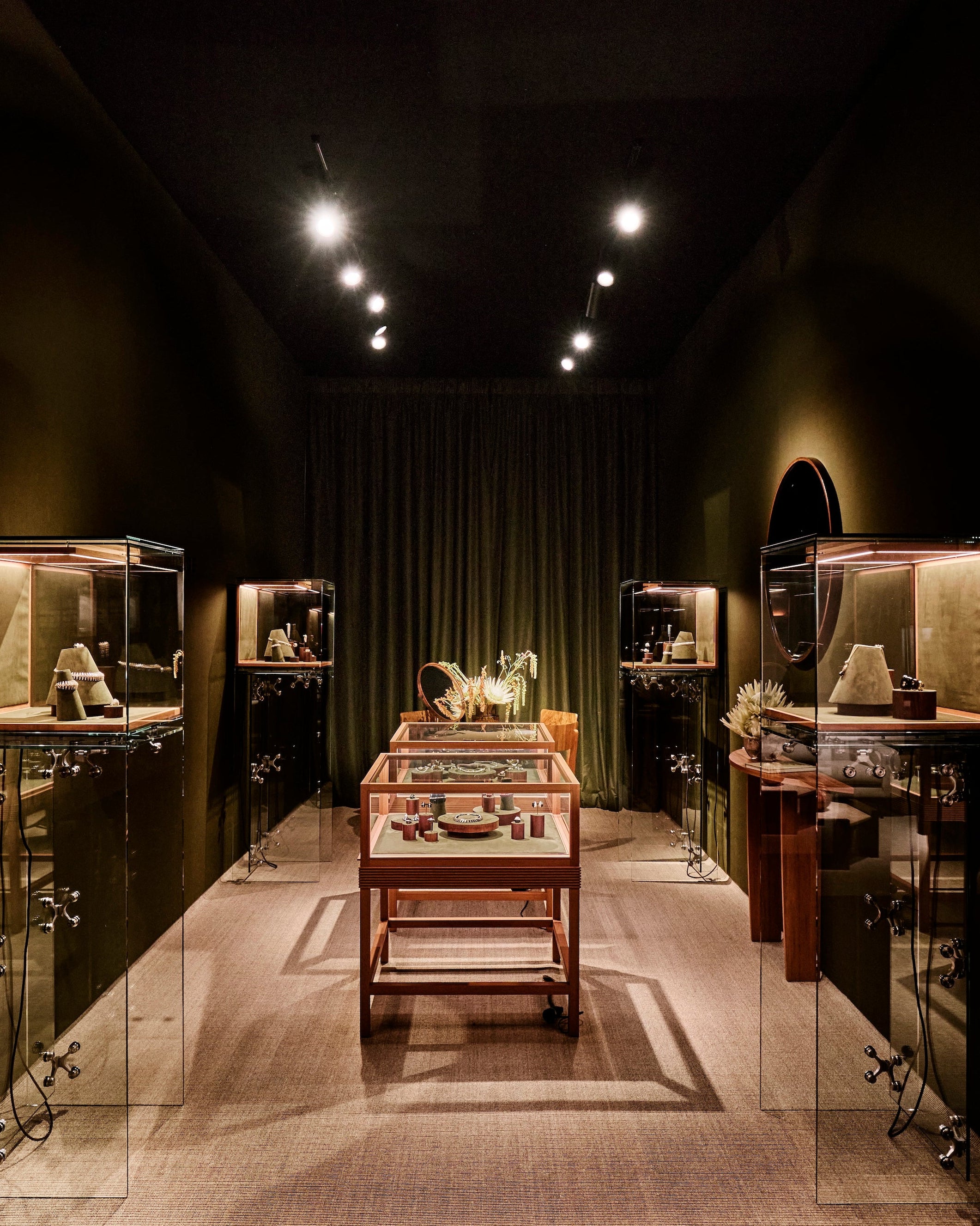 New pieces are presented inside glass vitrines by Tino Seubert and cabinets designed by Studio Mellone. The space is an extension of the visual language of our showrooms – intimate and inviting.