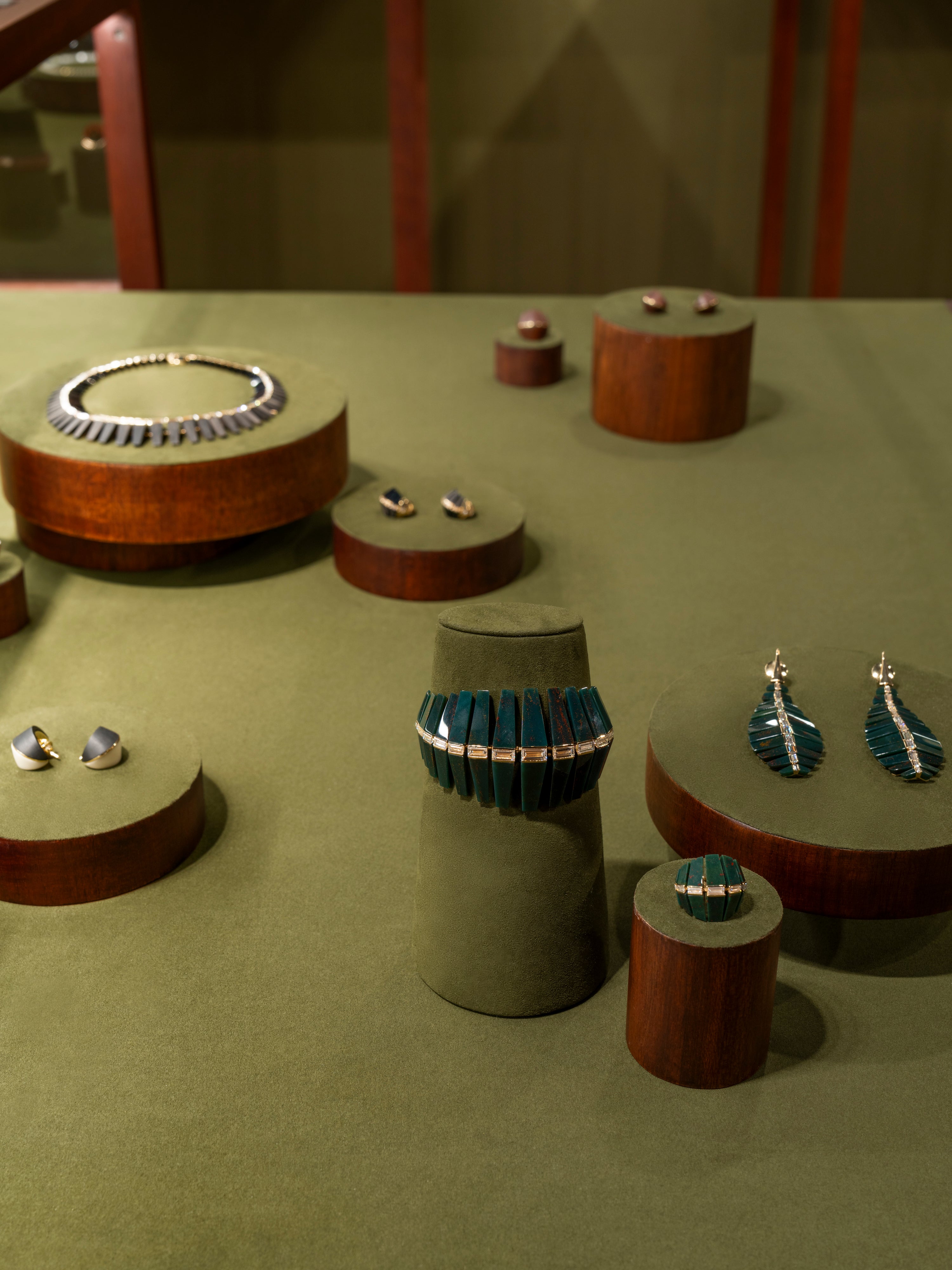 Building on the visual language from his PAD London debut presentation, the space was conceived in collaboration with interior designer Juliana Lima Vasconcellos. The focus was on the Deep Vertex series, displayed in cabinets designed by Studio Mellone, alongside furniture pieces by Juliana herself, as well as Bossa gallery and Atelier FM by Fabiana Machado.