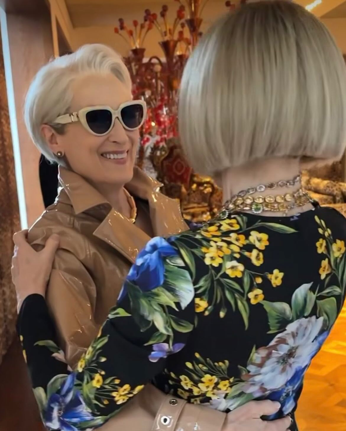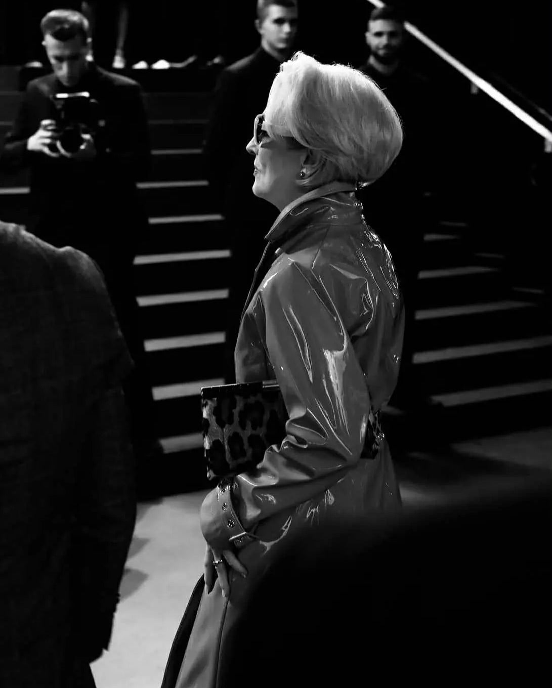 Meryl Streep attends Milan Fashion Week for the ‘Devil Wears Prada 2’ shoot, wearing Orbit Large Earrings in Petrified Wood.