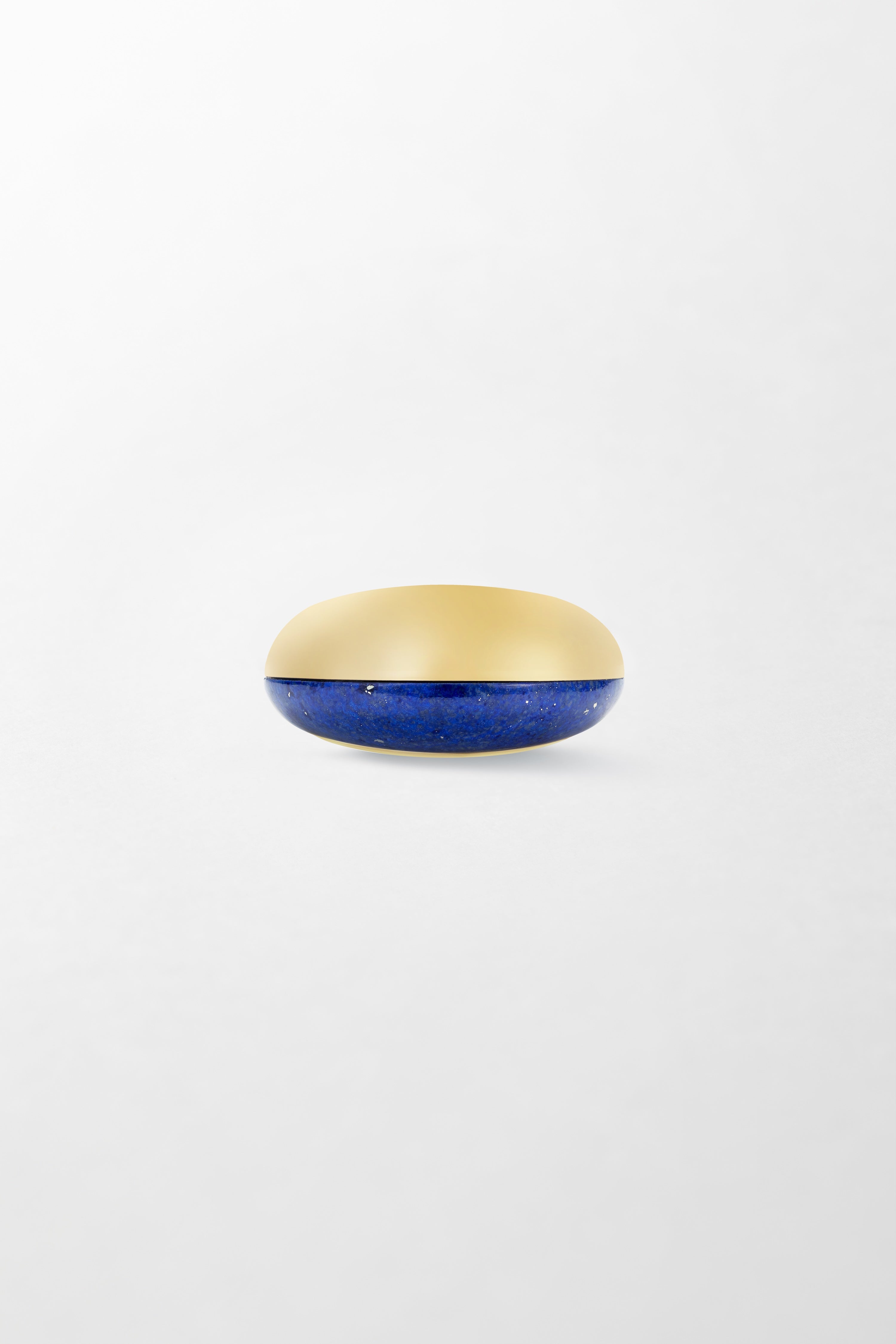 Crafted in 18k yellow gold and set with hand-carved lapis lazuli.