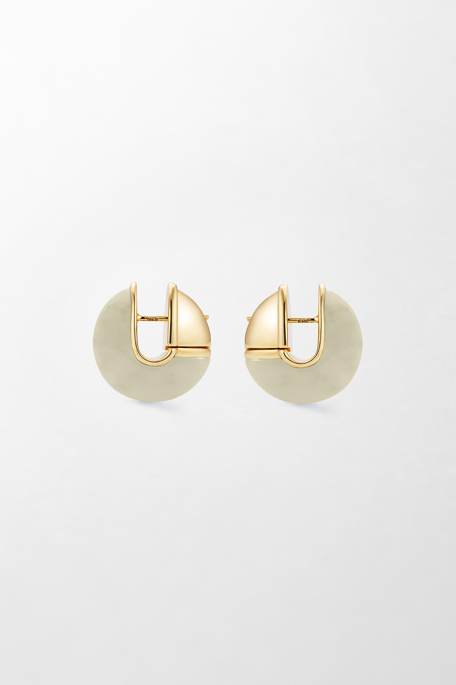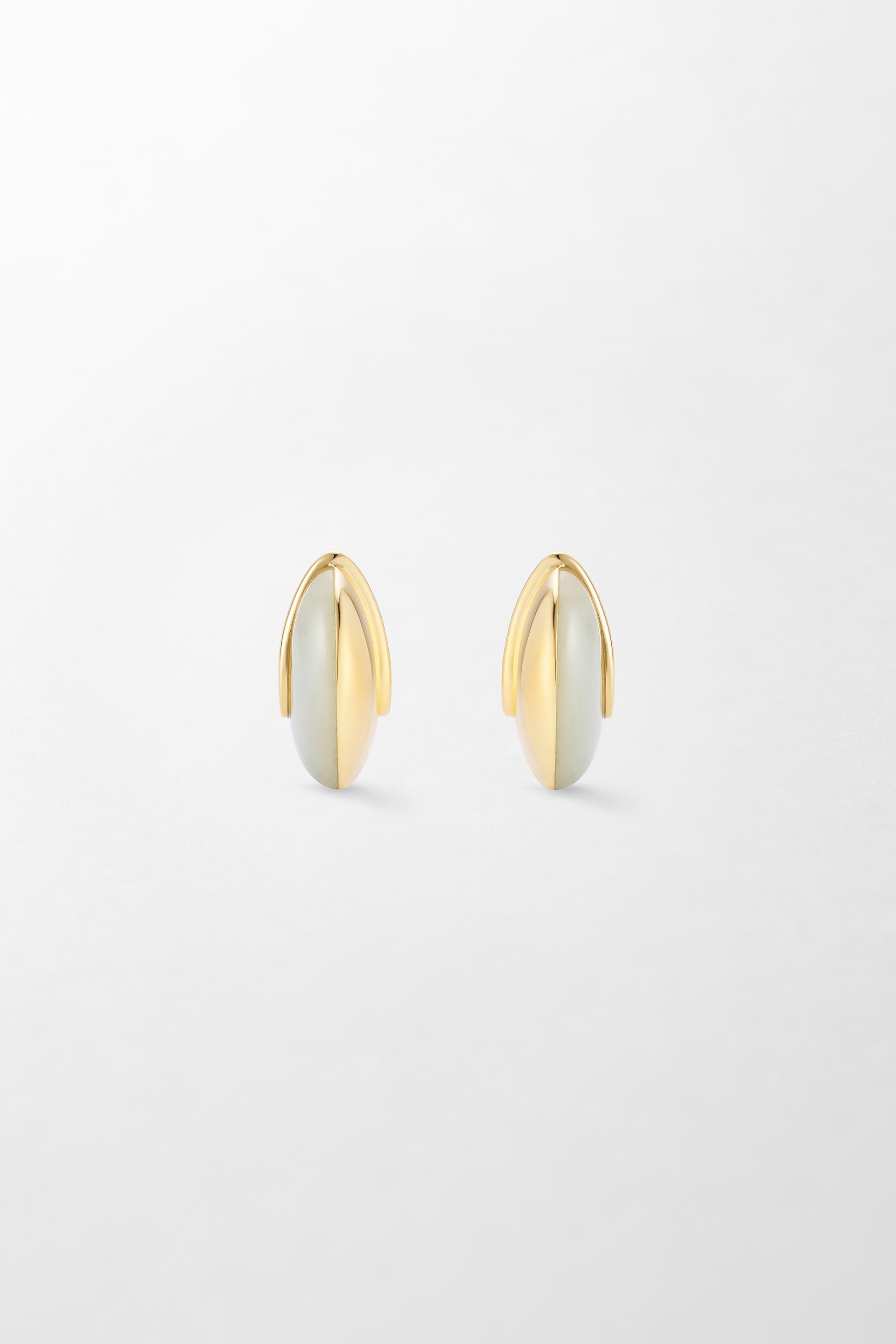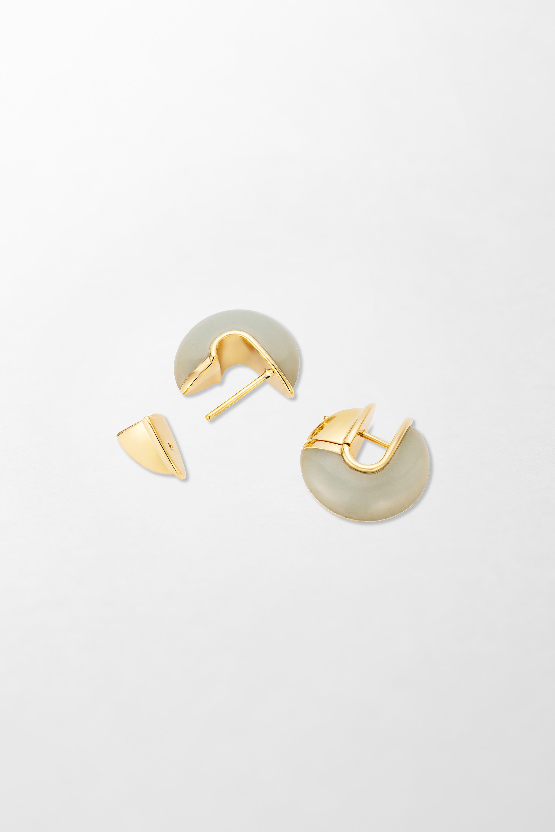 Crafted in 18k yellow gold and set with hand carved milky aquamarine.