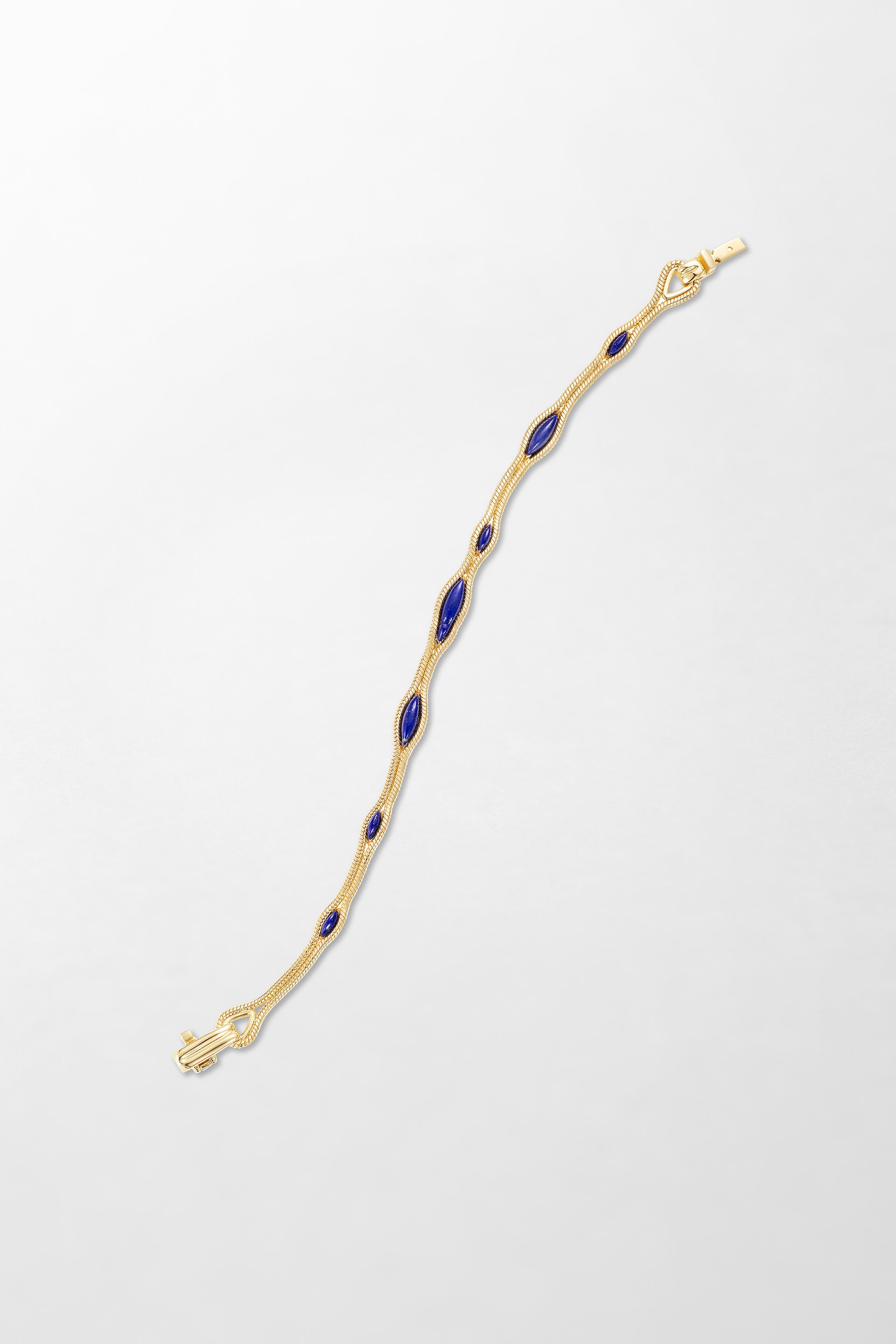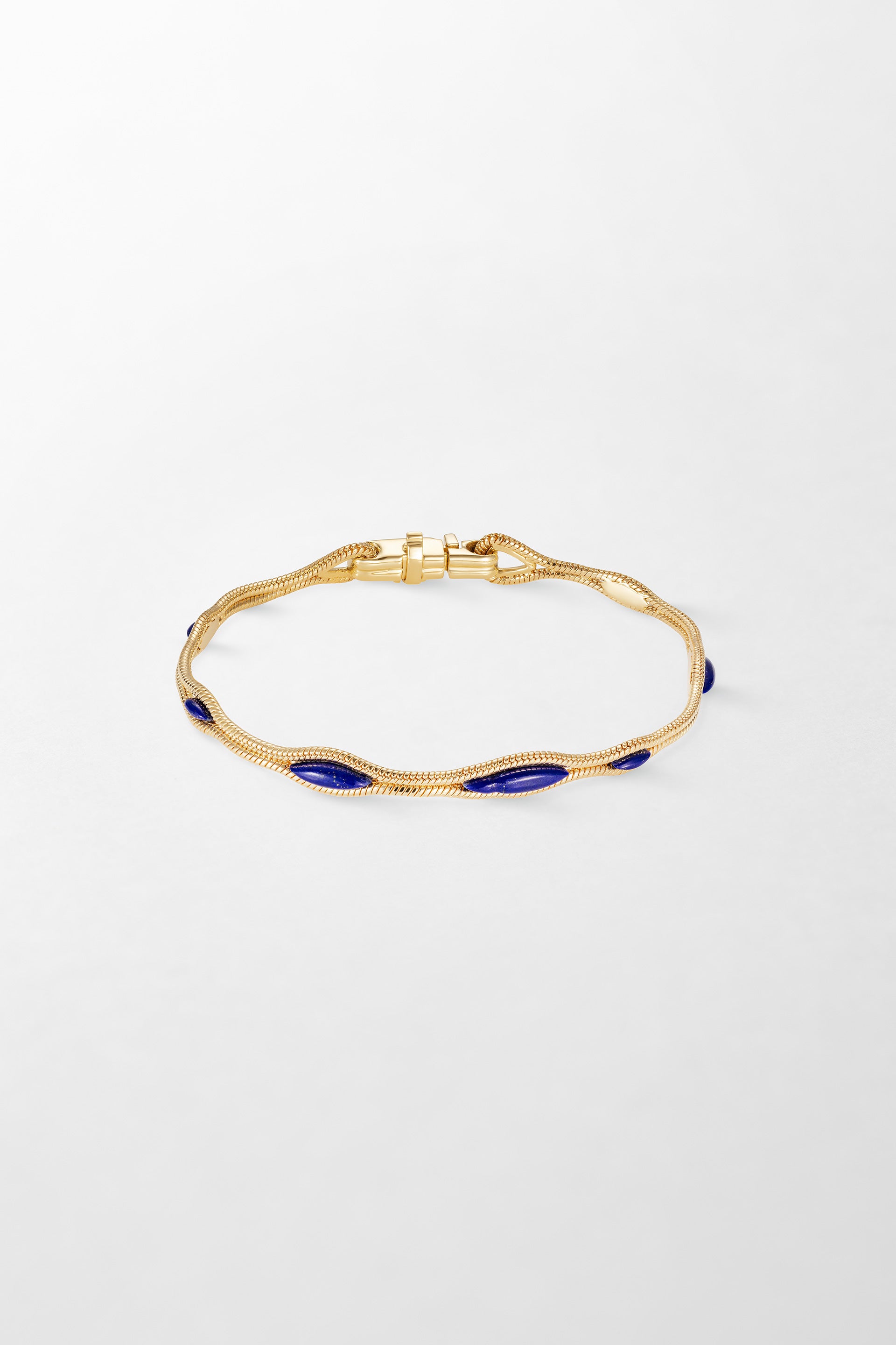 Crafted in 18k yellow gold and set with hand-carved lapis lazuli.