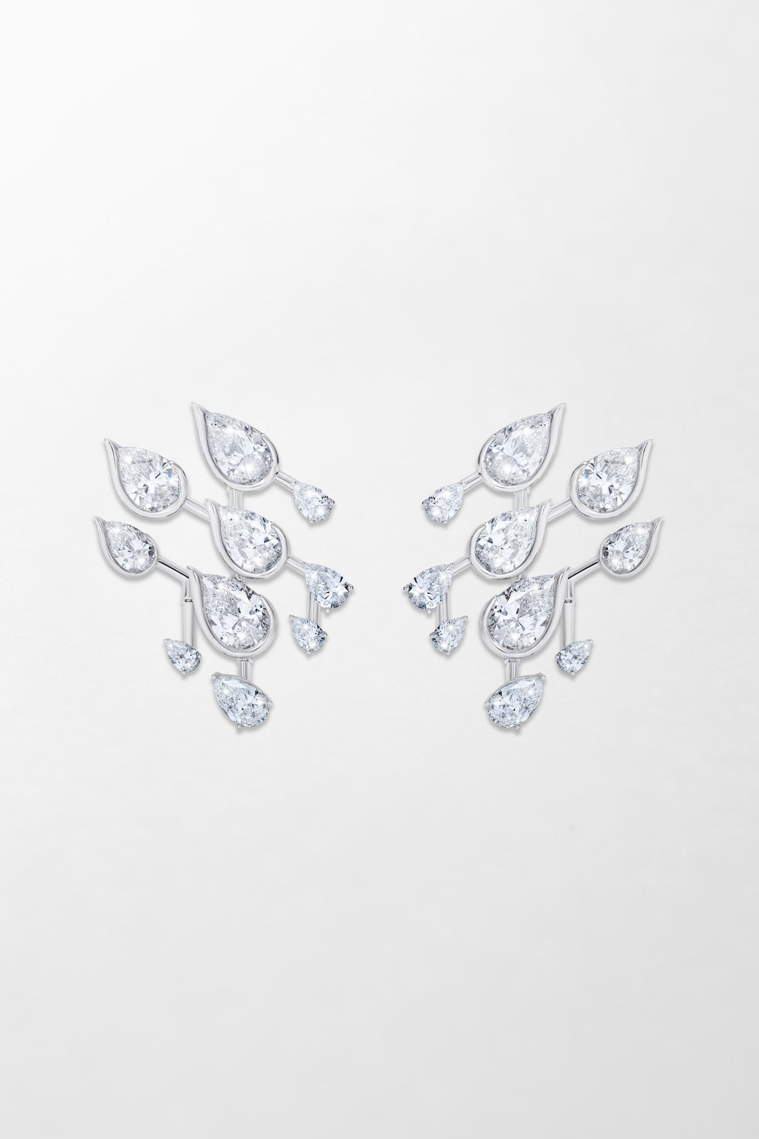 Crafted in 18k white gold and set with 16.82 carats of pear cut diamonds.