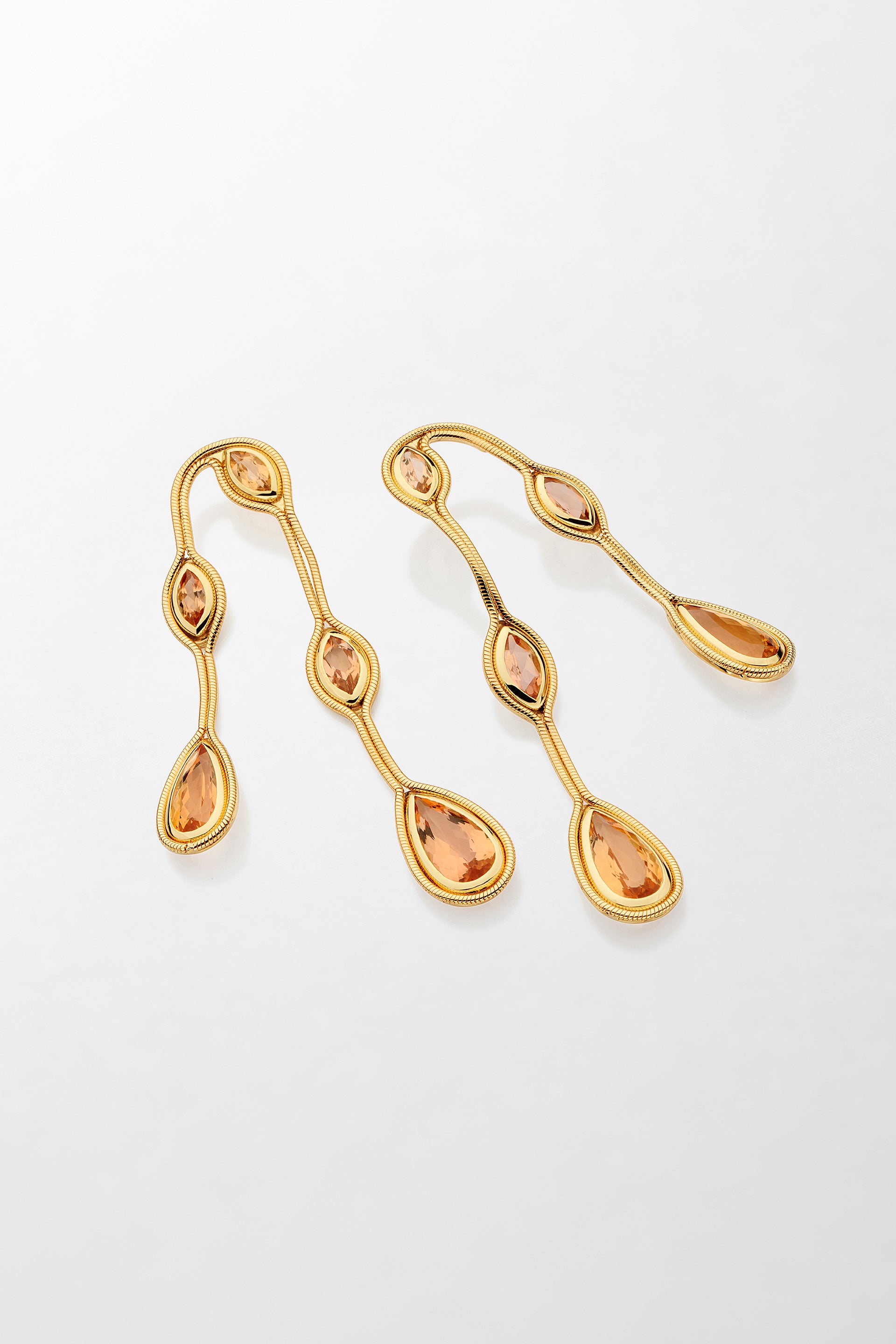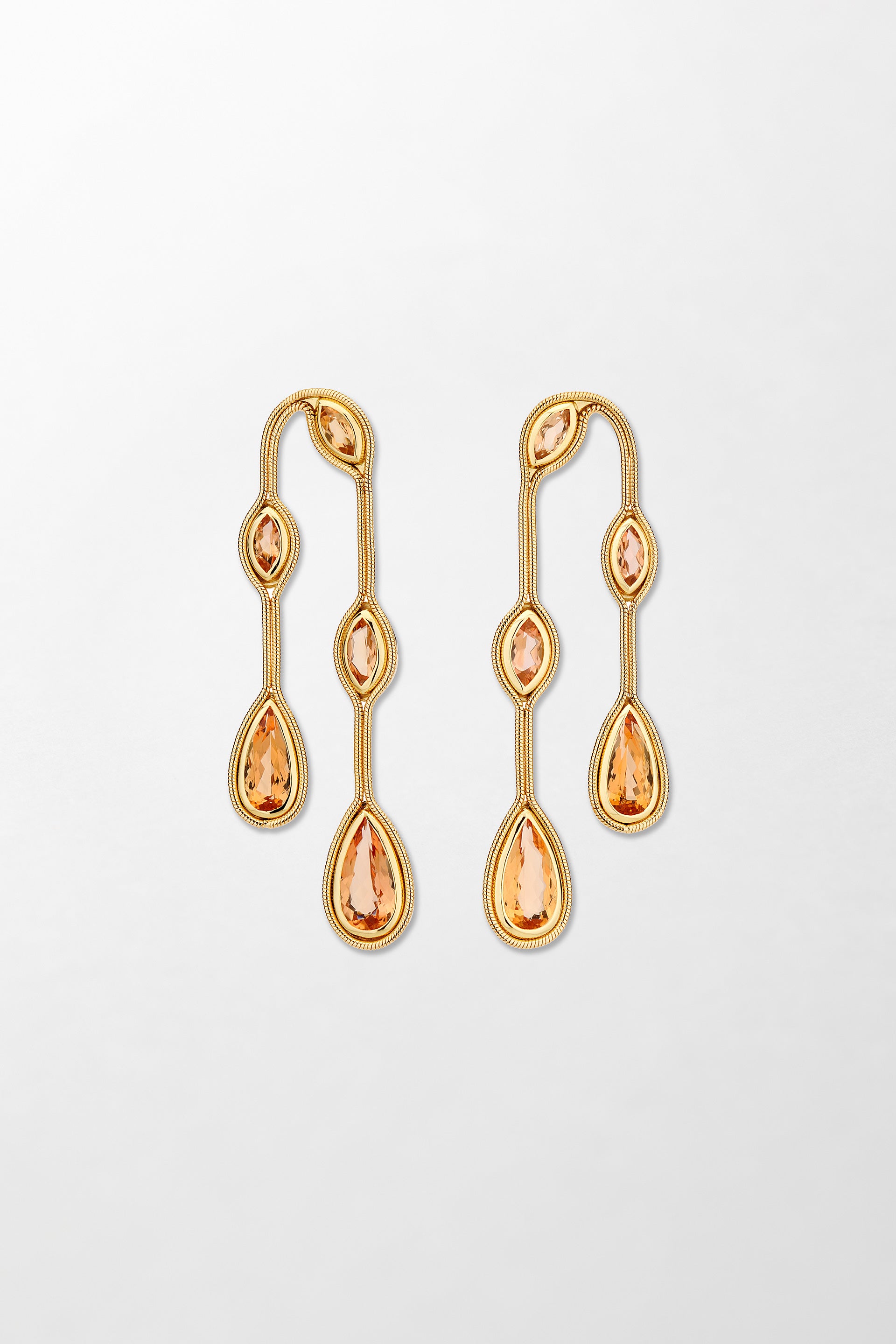 Crafted in 18k yellow gold and pear cut Imperial Topaz.