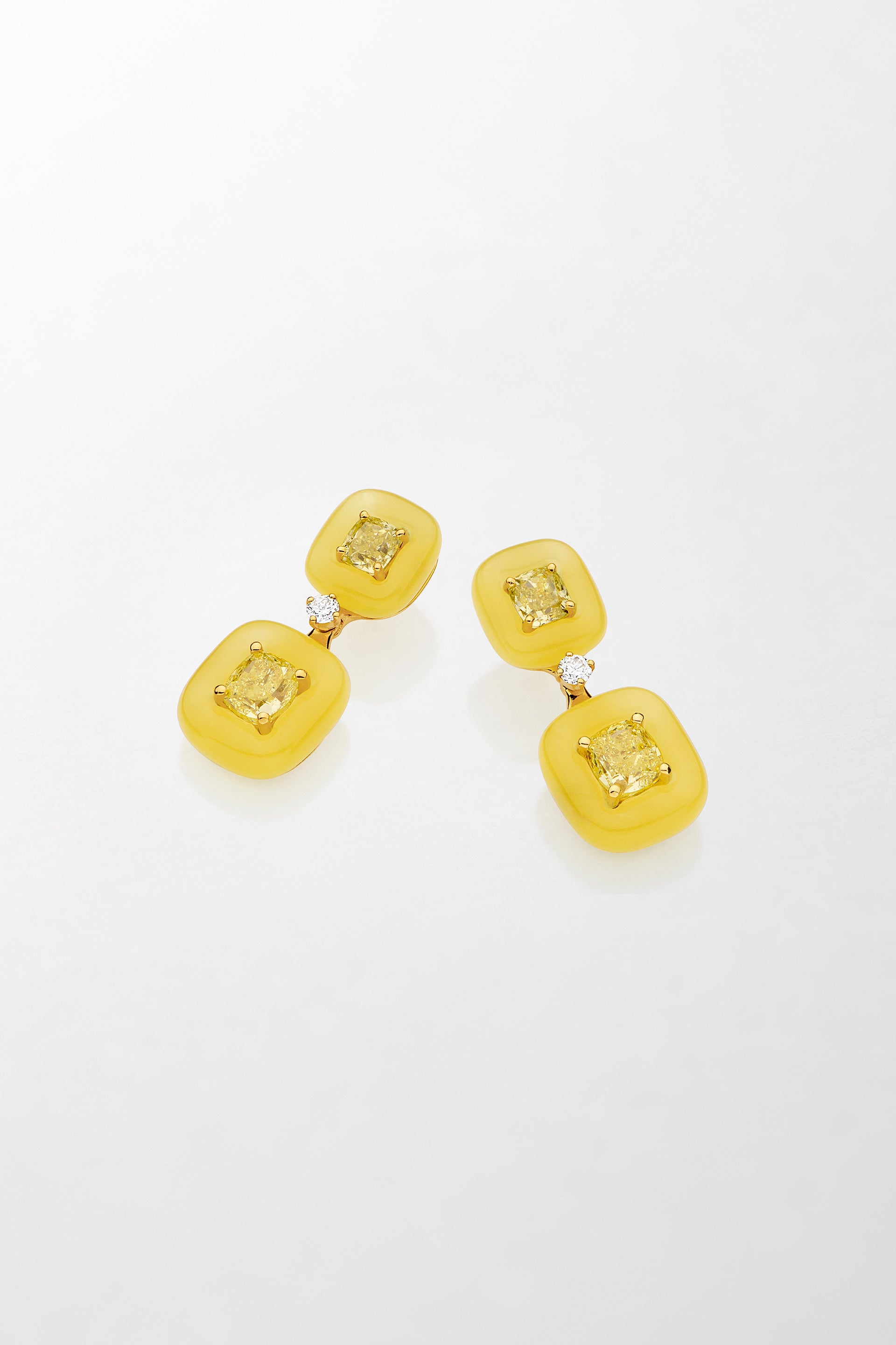 Crafted in 18k yellow gold, set with 3.17 carat yellow diamond and hand-carved Baltic amber.