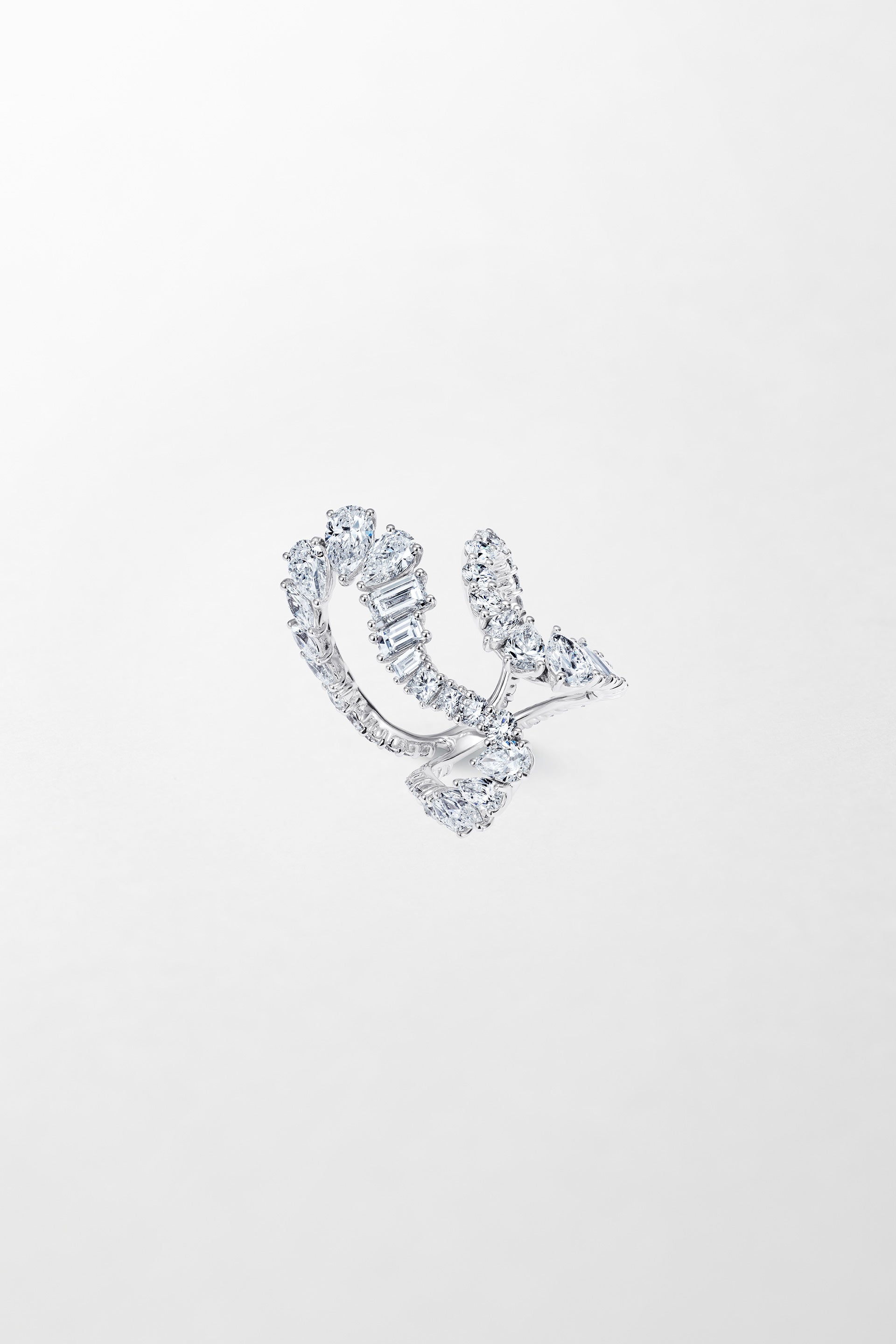 Crafted in 18k white gold and set with a mix of brilliant, oval, marquise, baguette and pear cut diamonds totalling approximately in 7.93 carats.