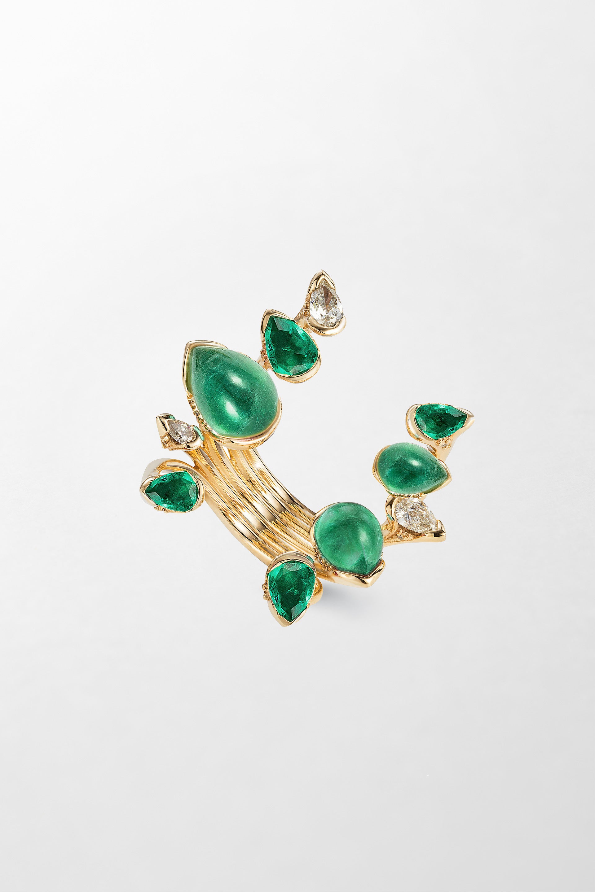 Crafted in 18k yellow gold, set with diamonds and emerald.