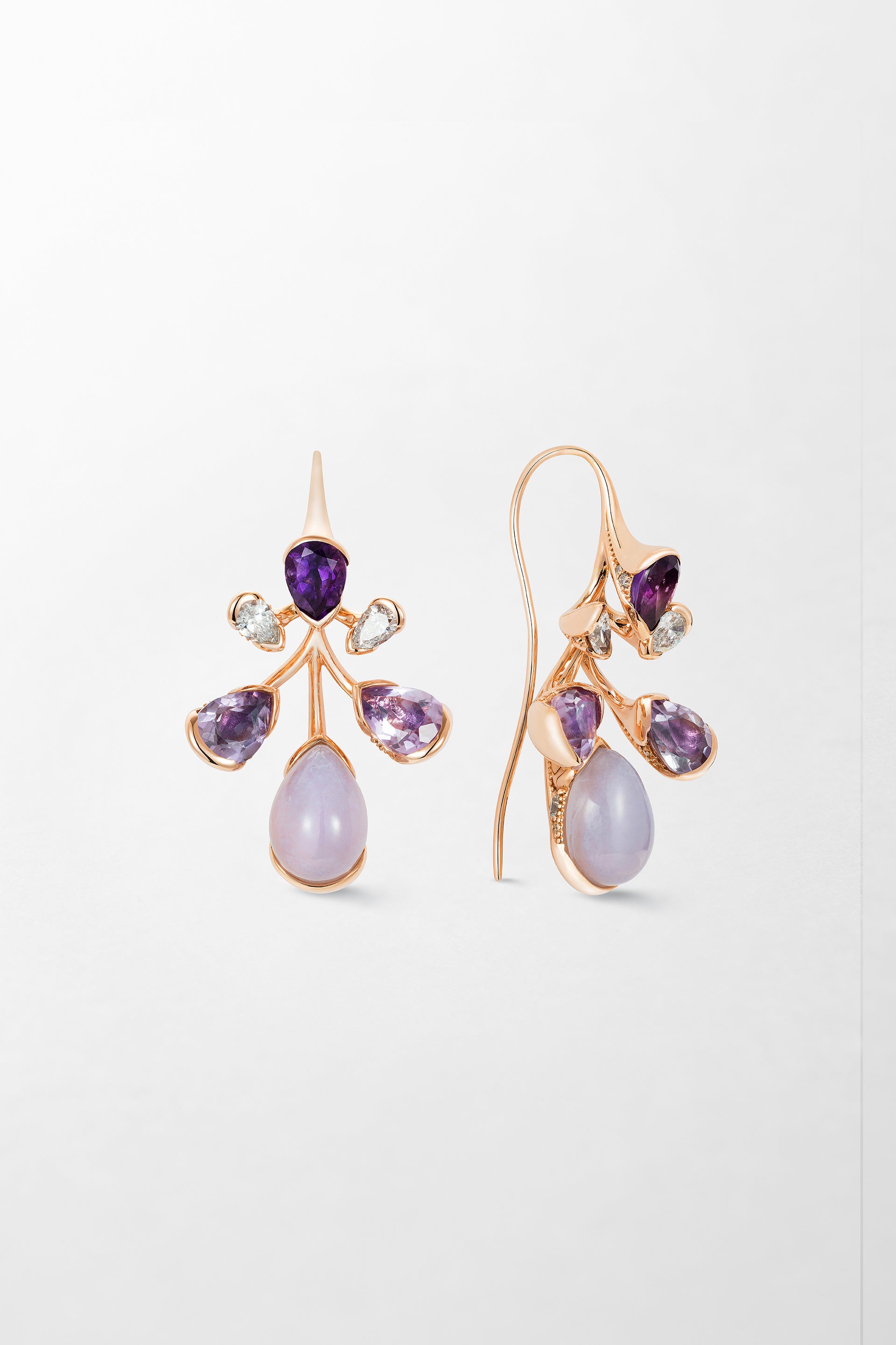 Crafted in 18k rose gold, set with 1 carats of diamonds, amethyst, chalcedony.