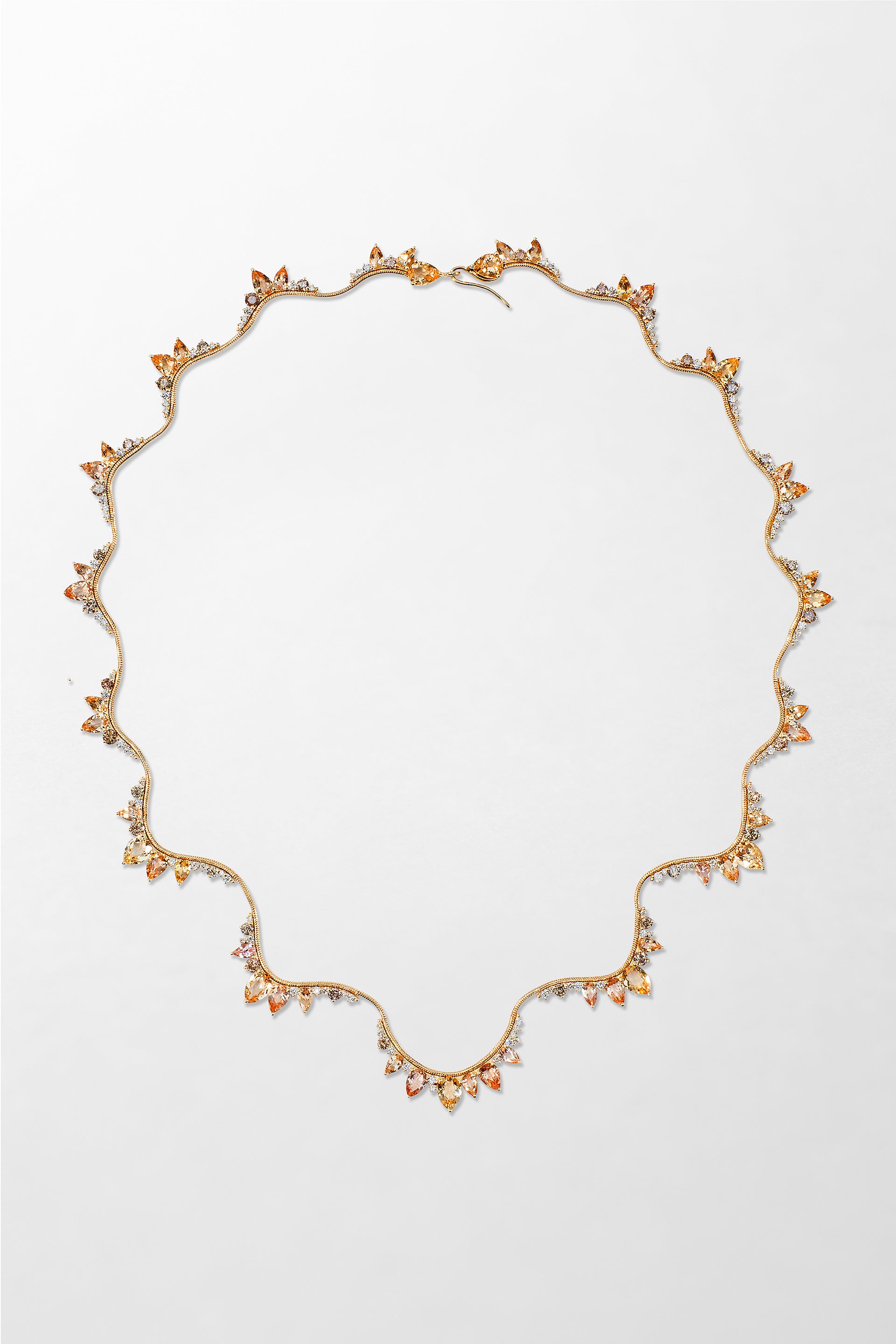 Crafted in 18k yellow gold, white and brown diamond, imperial topaz.
