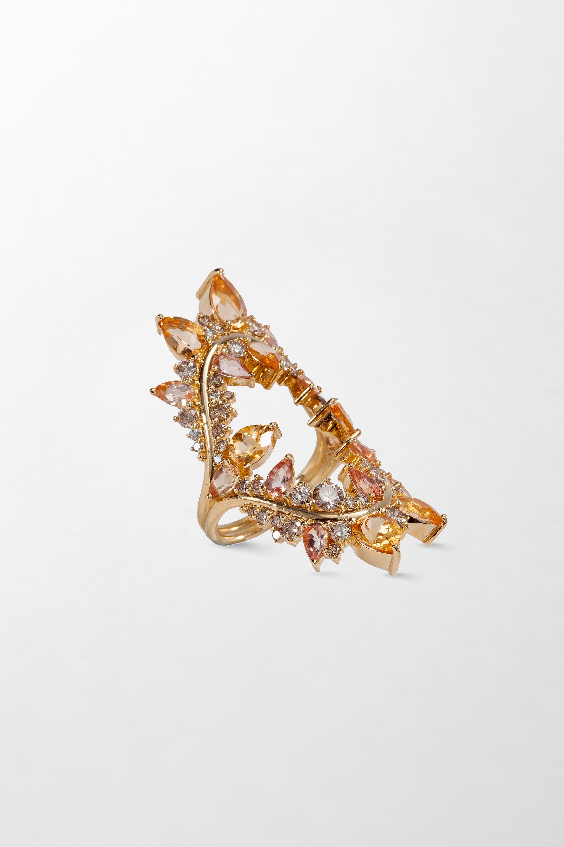 Crafted in 18k yellow gold, and set with 1.7 carats of white and brown diamonds and imperial topaz.