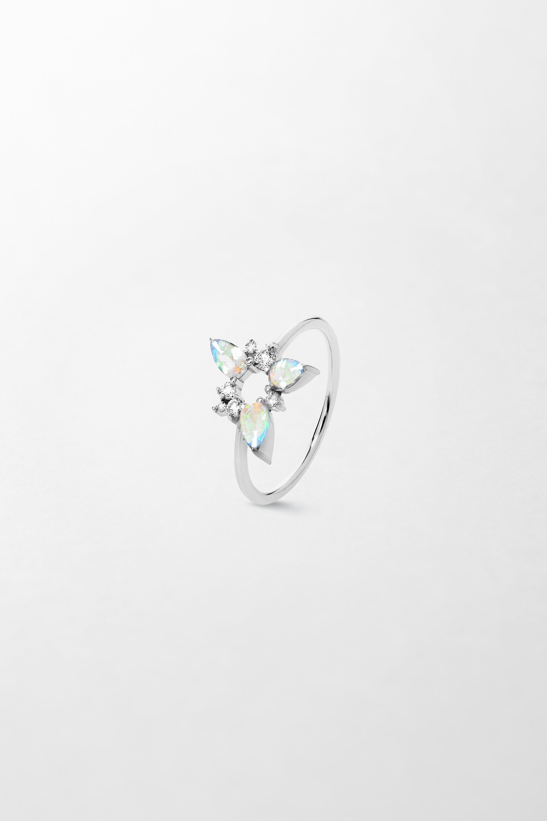 Crafted in 18k white gold, set with 0.12 diamonds and opal.