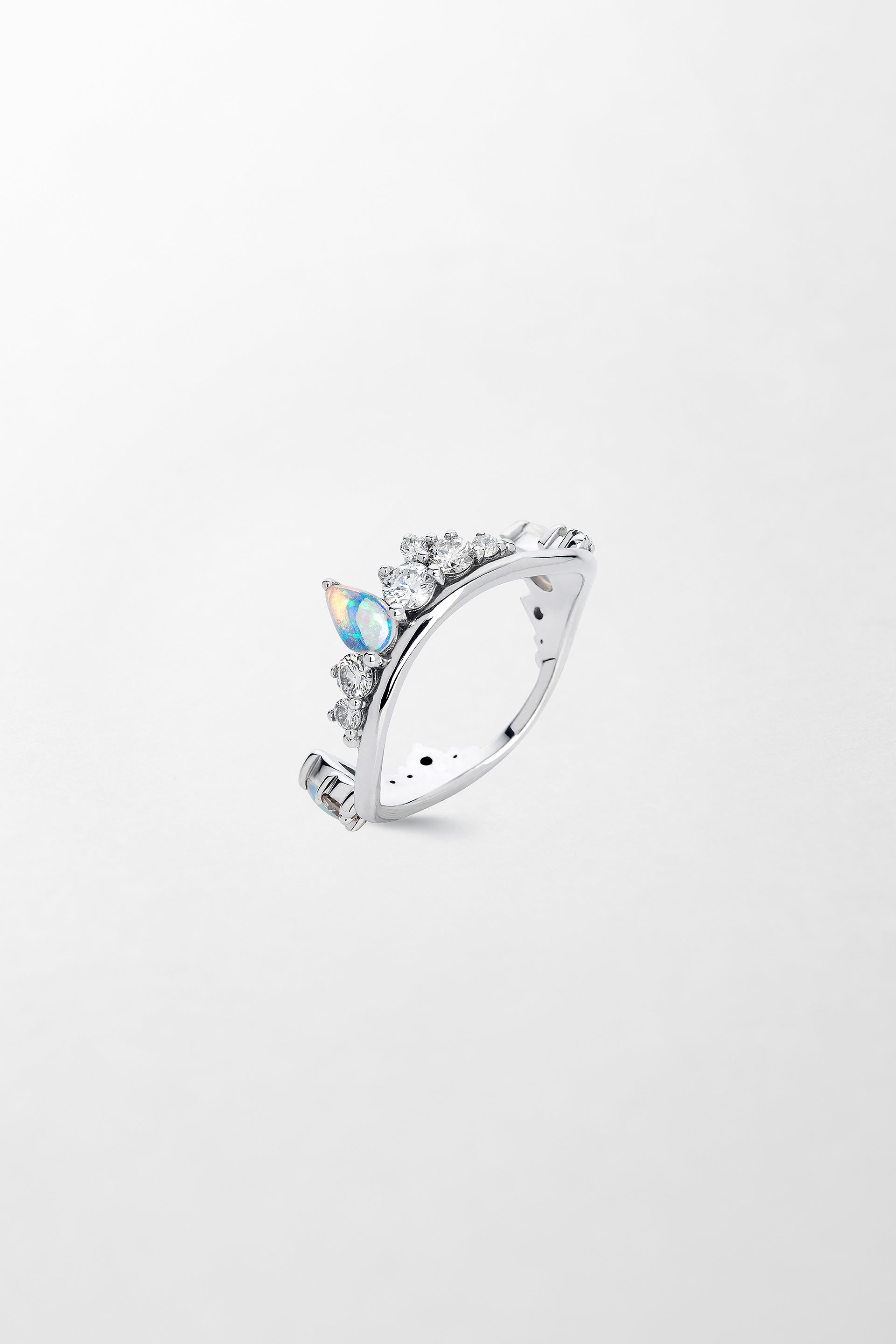 Crafted in 18k white gold, set with 0.58 carats of diamonds and hand-carved opal.