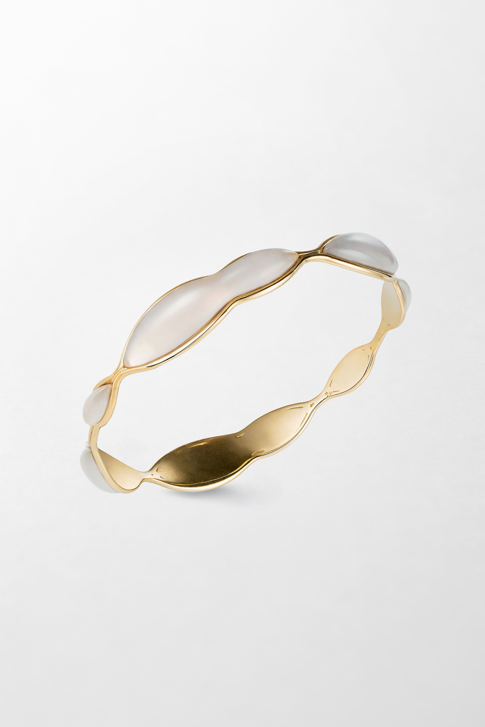 Crafted in 18k yellow gold and set with hand-carved milky quartz.