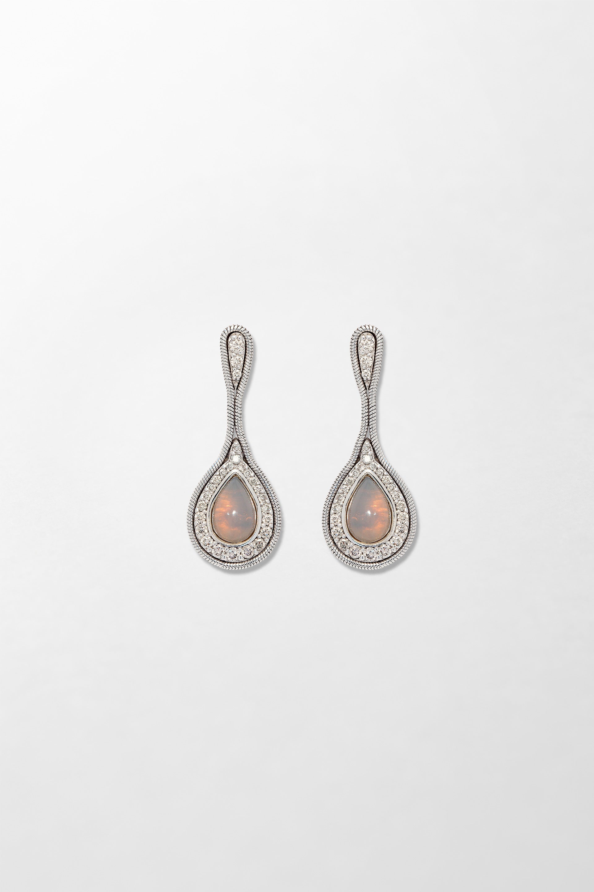 Crafted in 18k white gold and set with 0.52 carats of brilliant cut diamond and hand-carved grey opal.