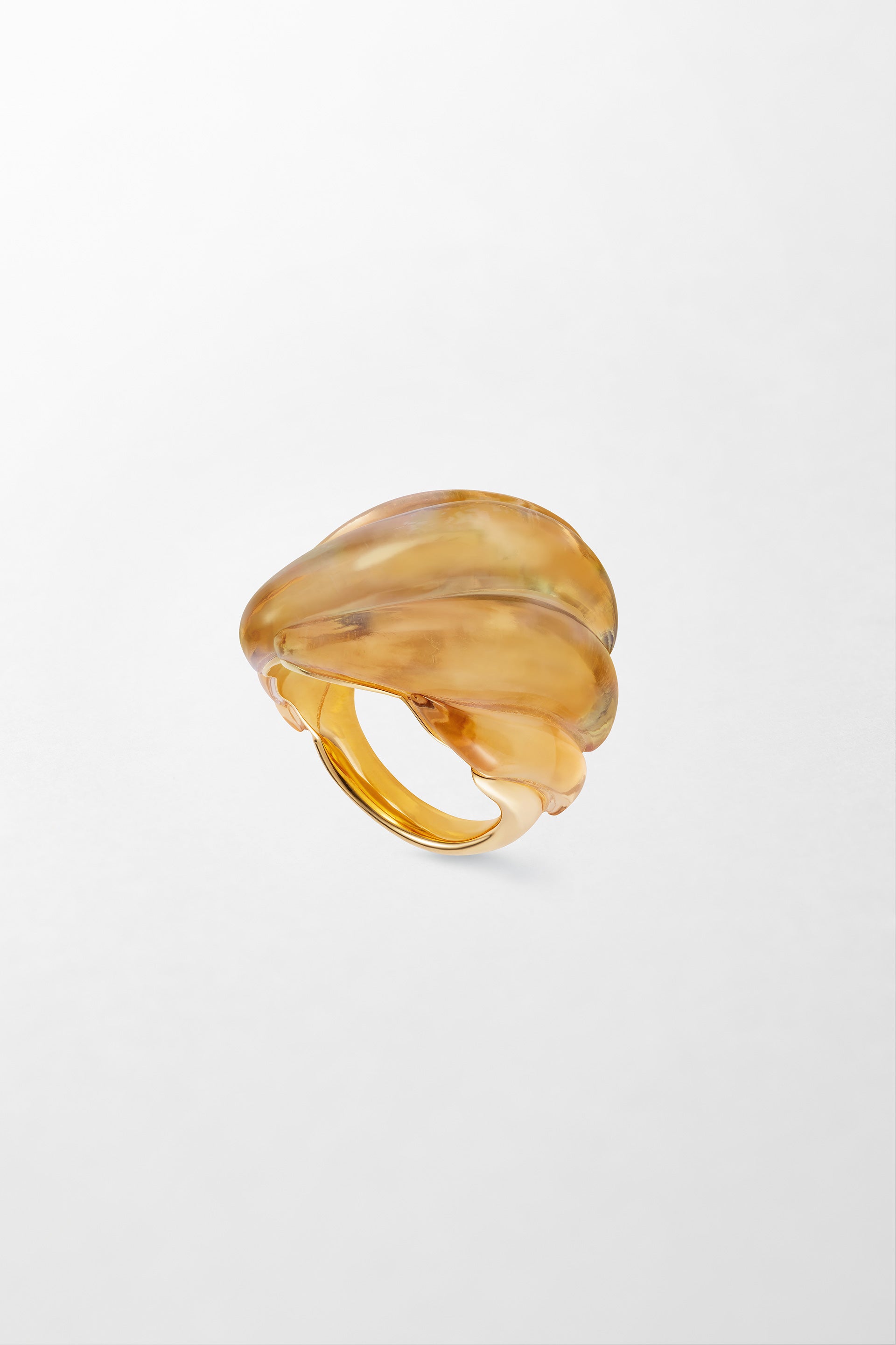 Crafted in 18k yellow gold and set with hand-carved citrine.