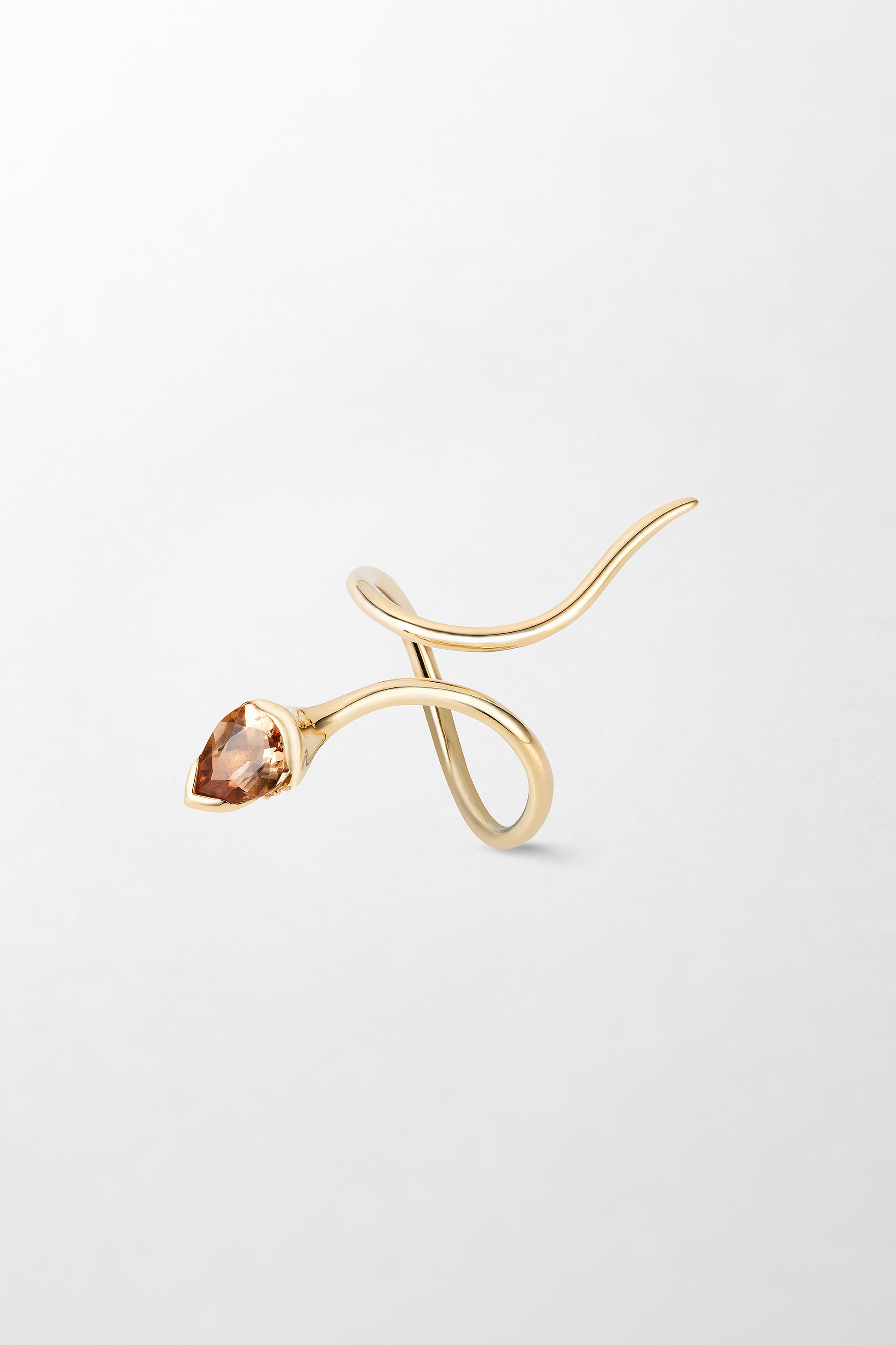 Crafted in 18k yellow gold, set with diamonds and hand-carved imperial topaz.