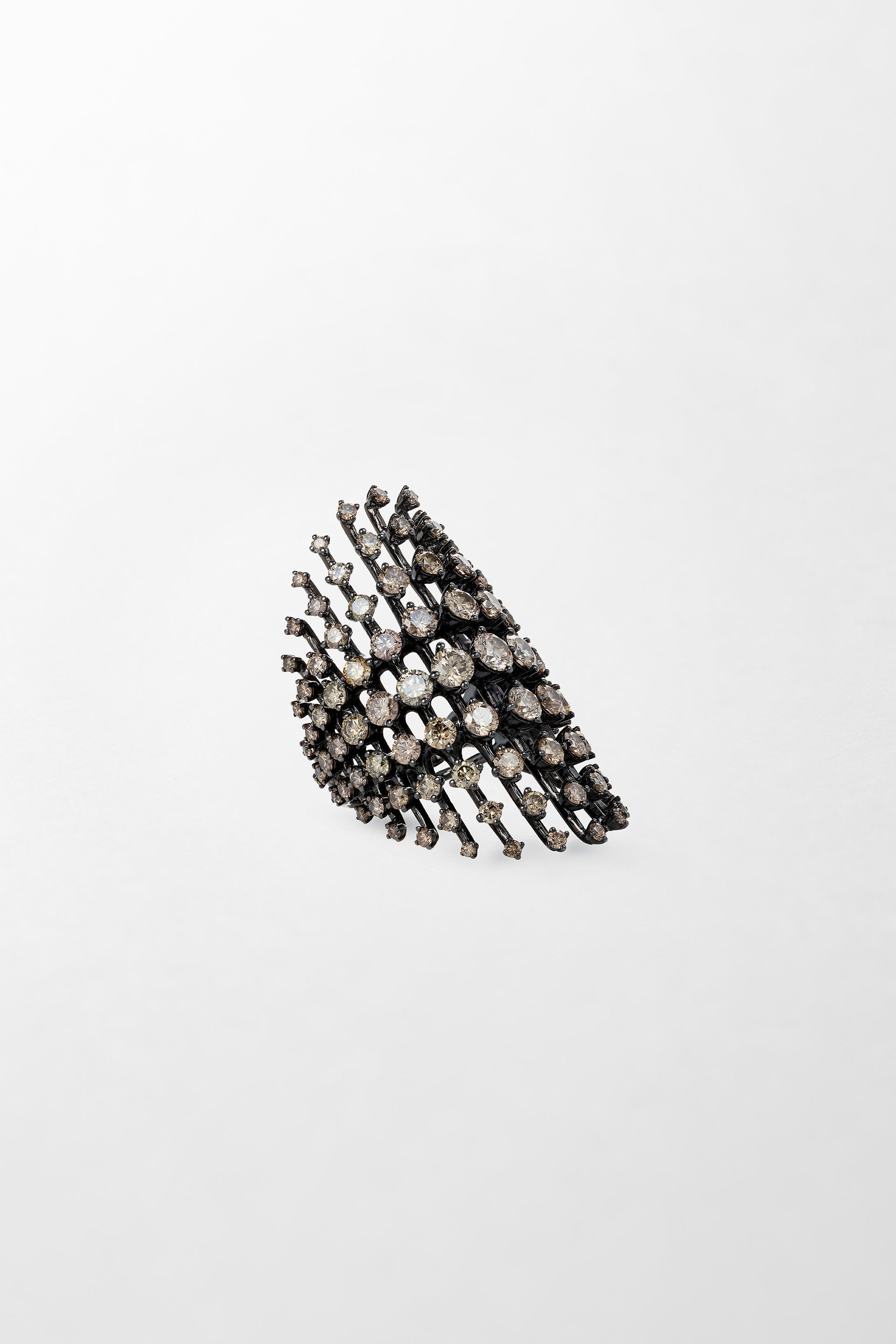 Crafted in 18k gold plated in black ruthenium and set with 5.78 carats of brillant cut brown diamonds.