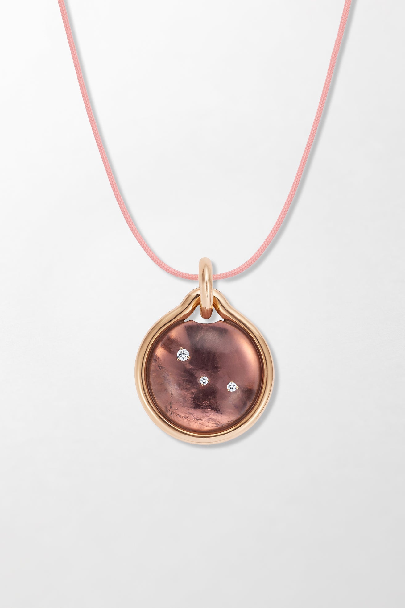 Crafted in 18k rose gold set with brilliant cut diamonds and hand-carved amethyst. Cord included with 18k yellow gold clasp.