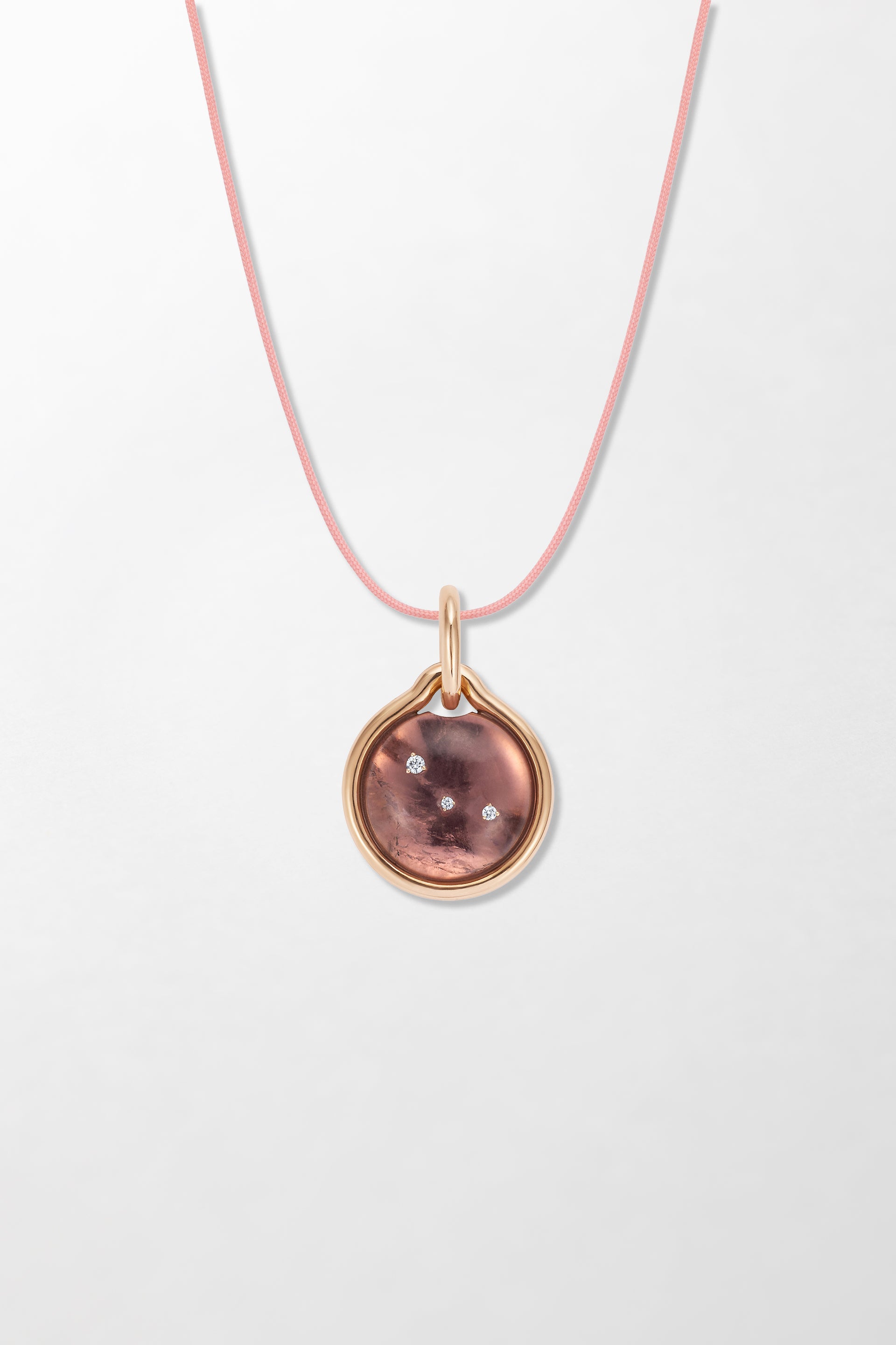 Crafted in 18k rose gold and set with brilliant cut diamonds with hand-carved amethyst. Cord included with 18k yellow gold clasp.