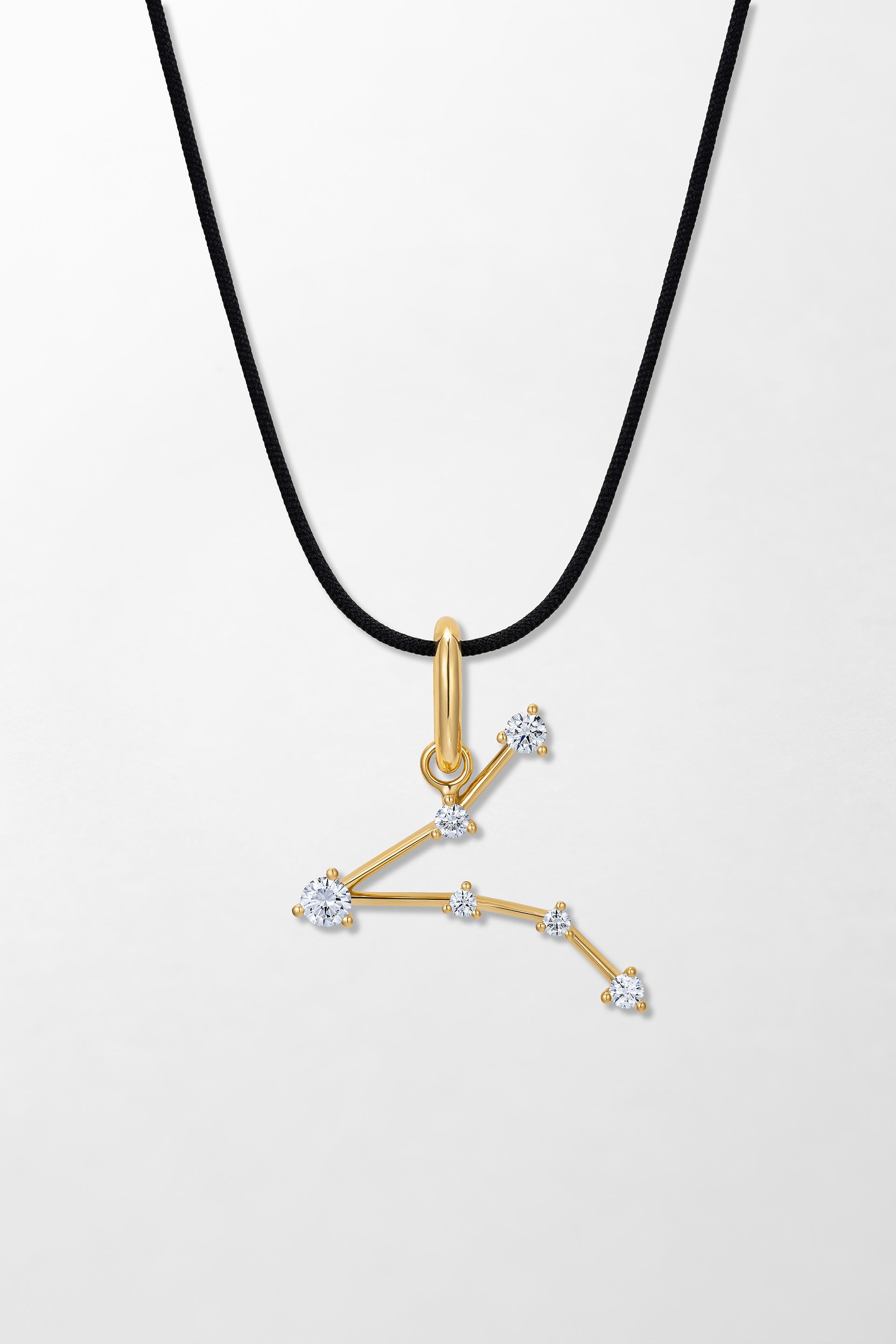 Crafted in 18k yellow gold and set with 0.45 carats of brilliant cut diamonds. Cord included with 18k yellow gold clasp.