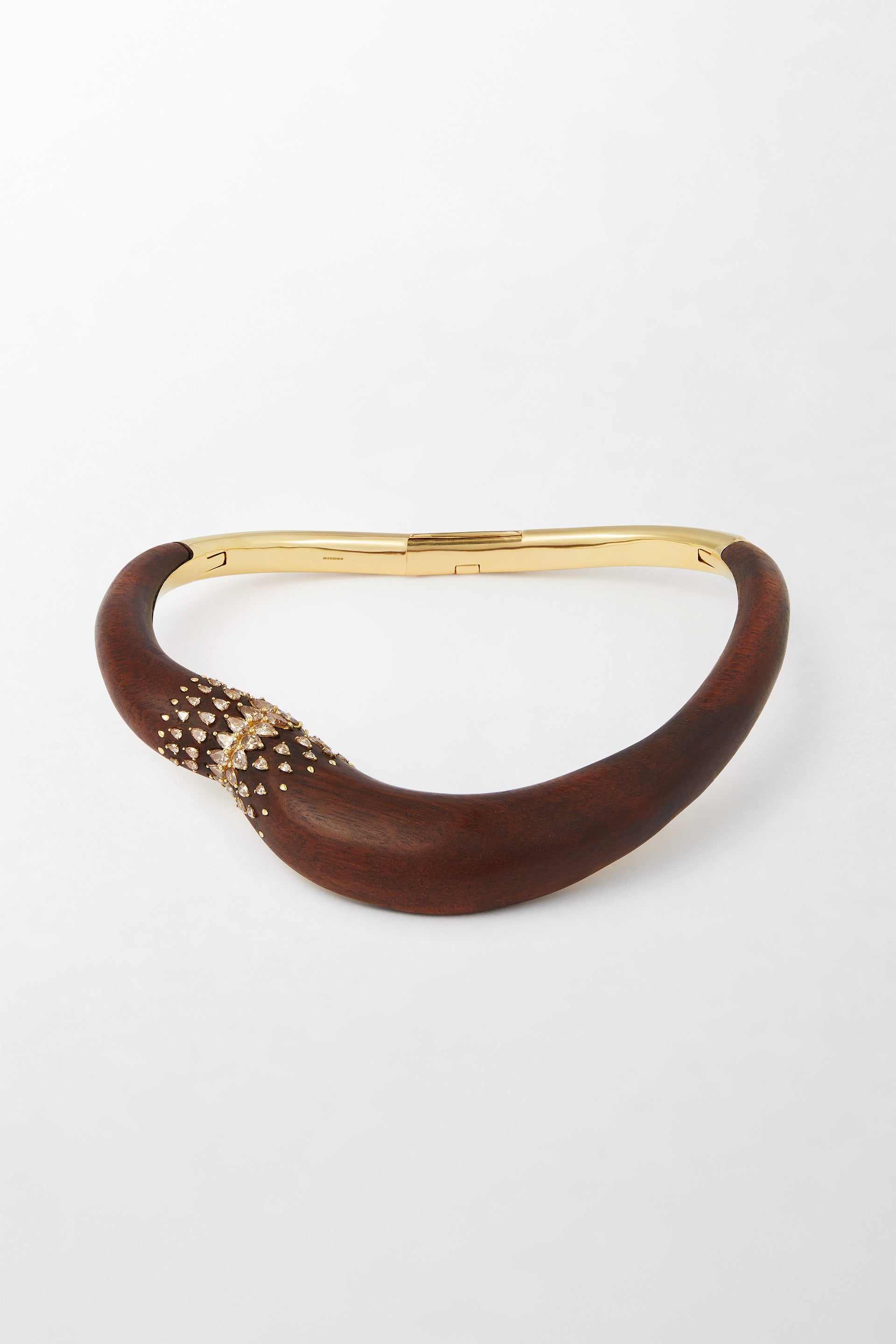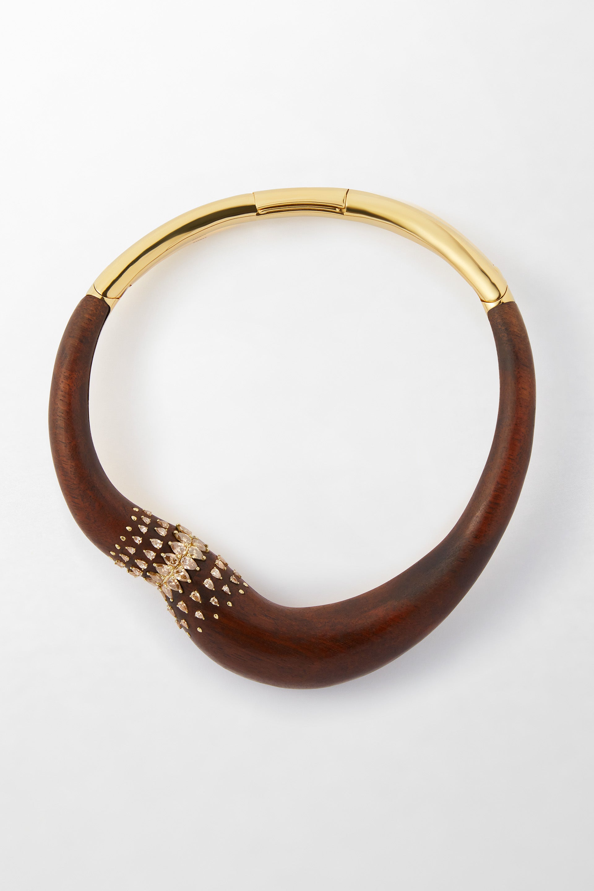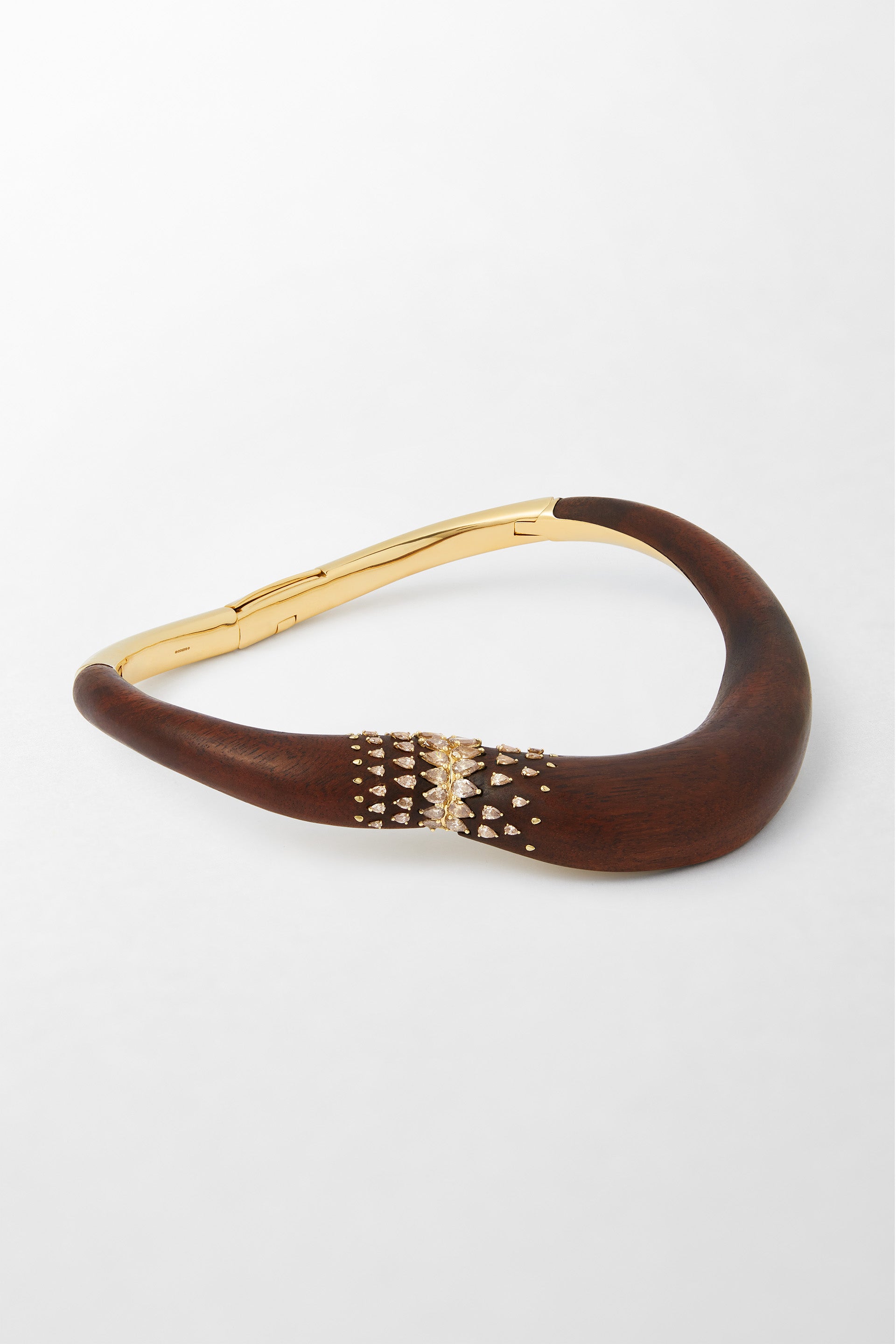 Crafted in 18k yellow gold, set with 8.49 carats of pear-cut brown diamonds and Louro wood.