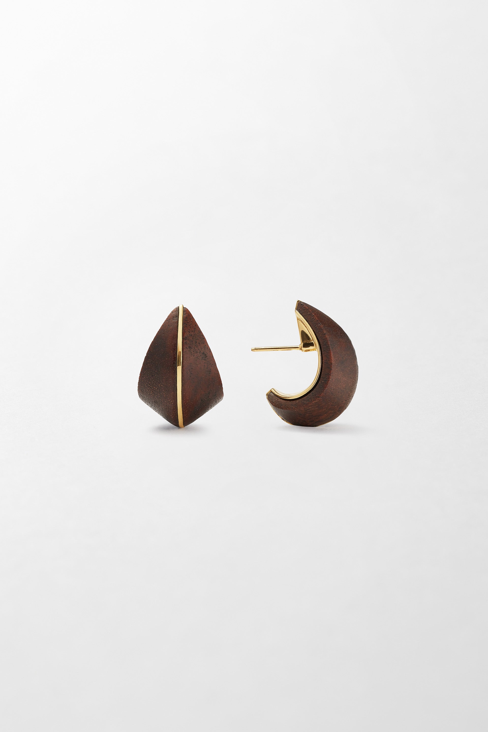 18k yellow gold, set with Red Louro wood.