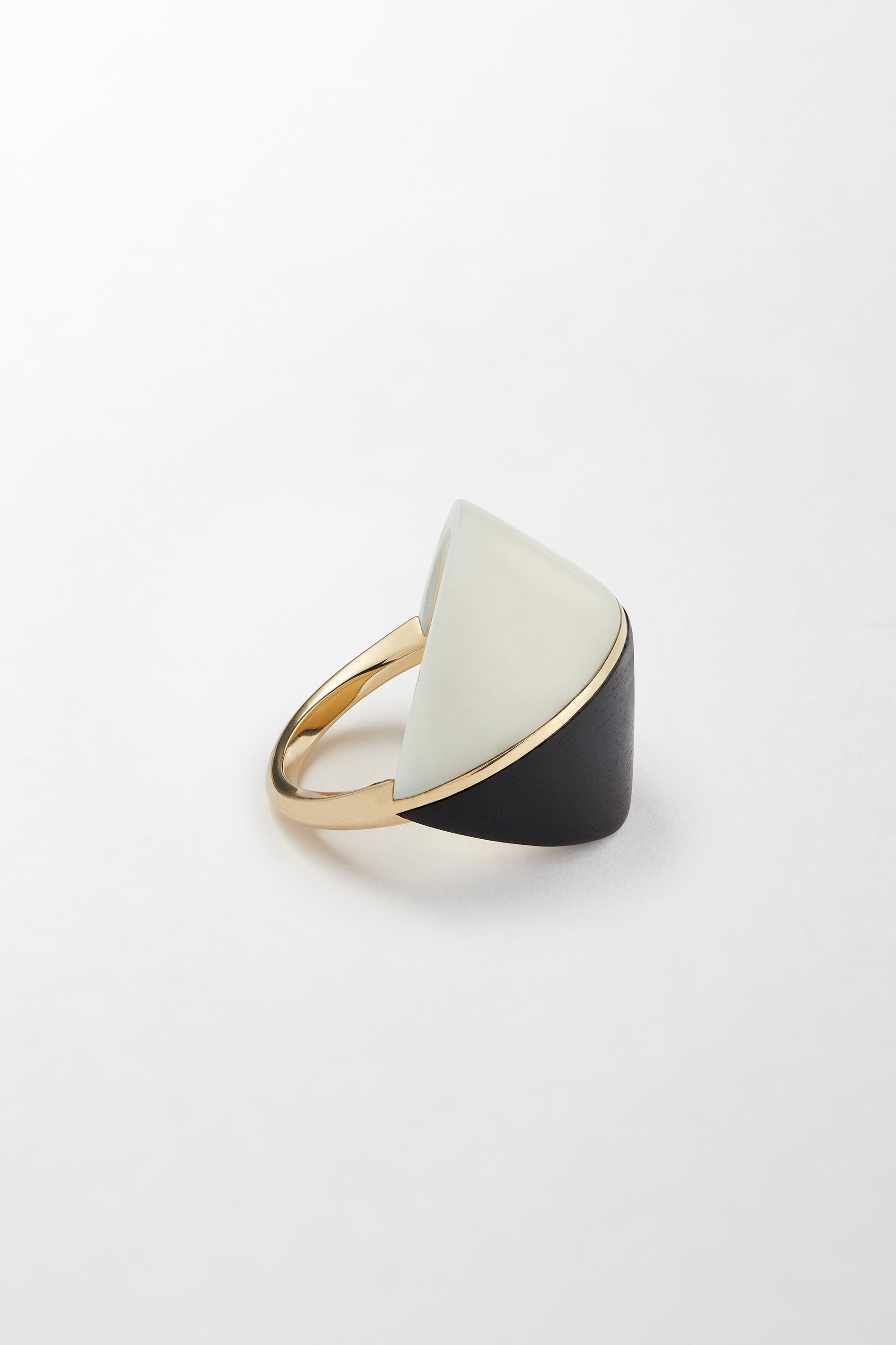 18k yellow gold, set with Ebony wood and tagnua seed.