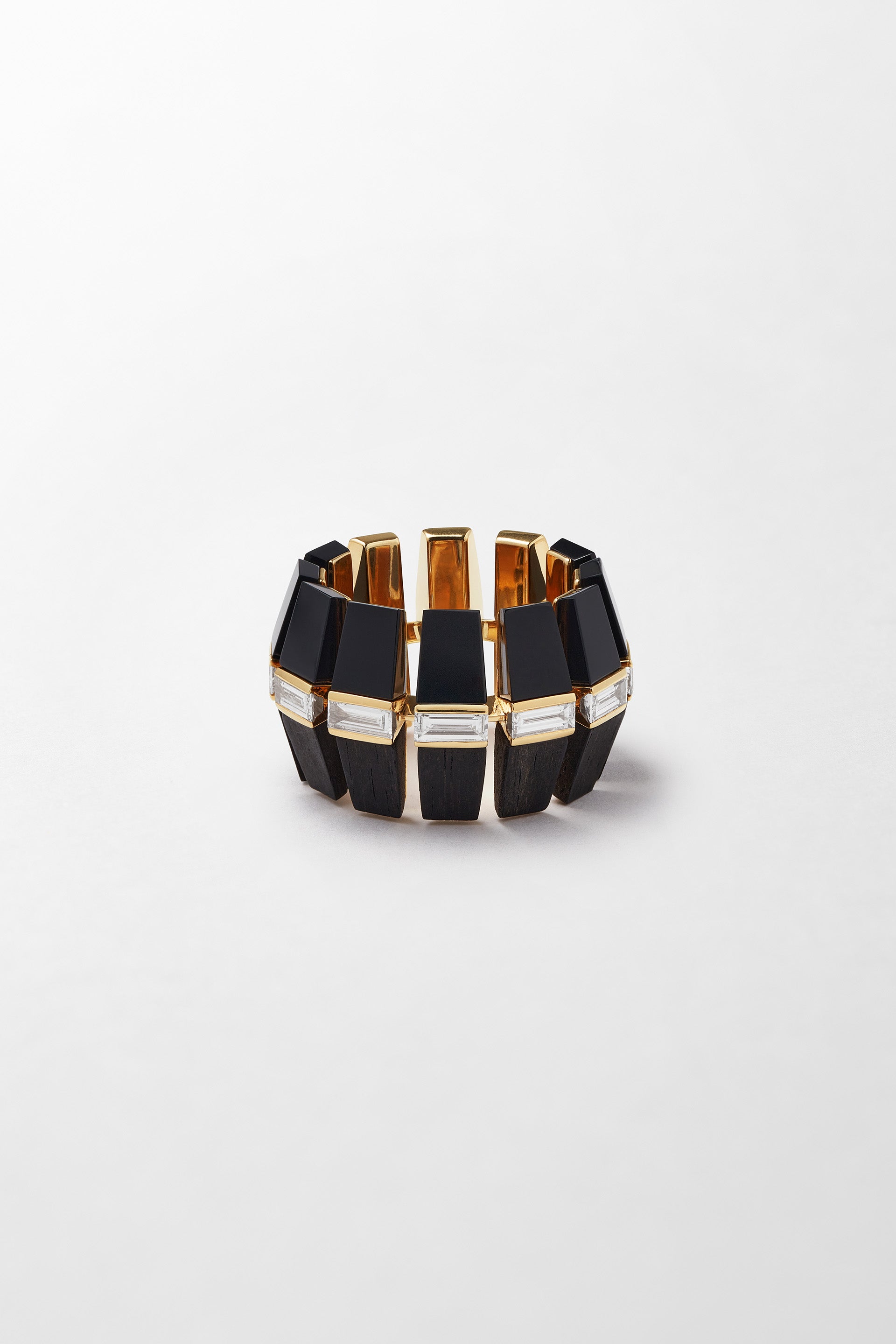 18k yellow gold, set with onyx, Ebony and 1.5 carats of baguette cut diamonds.