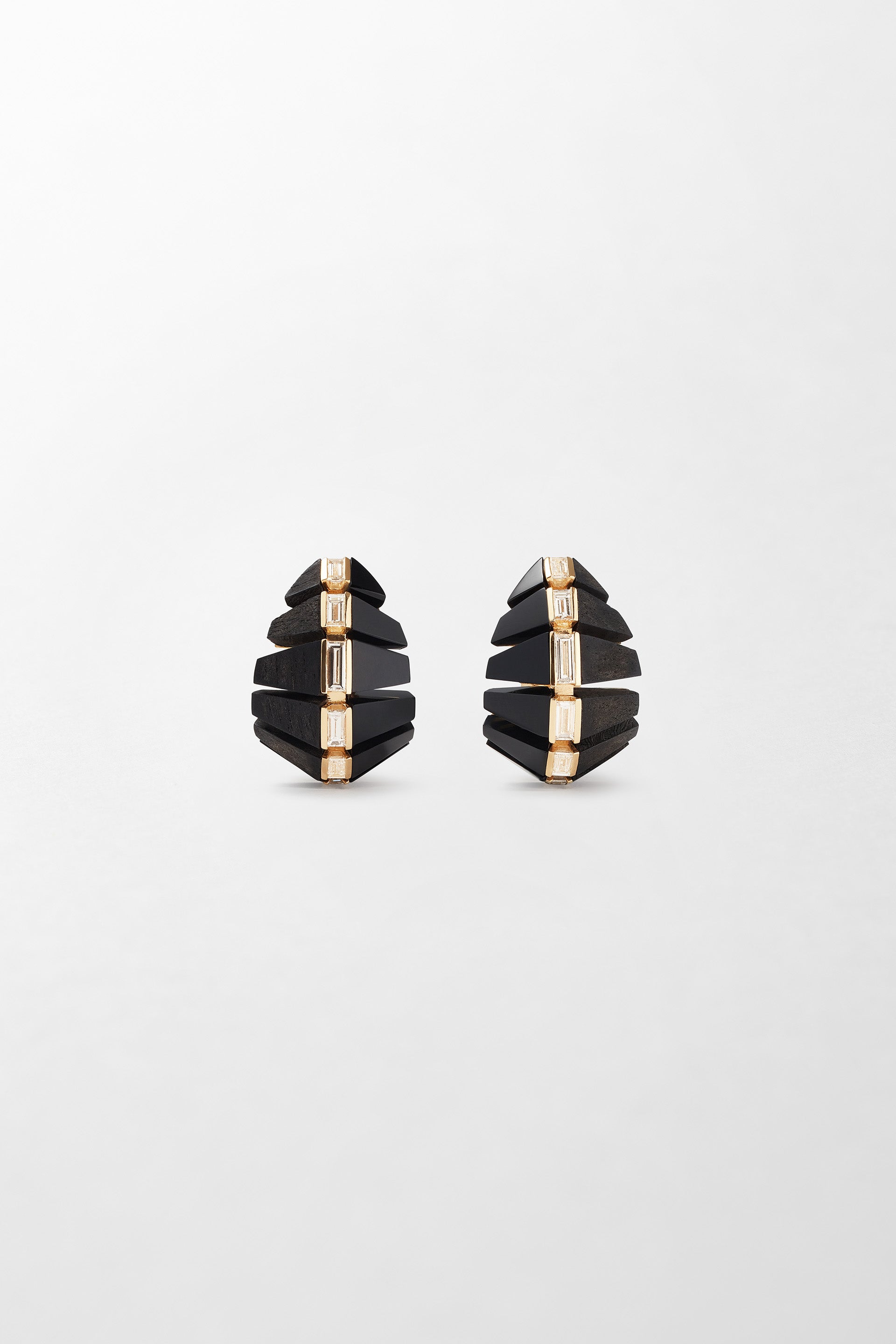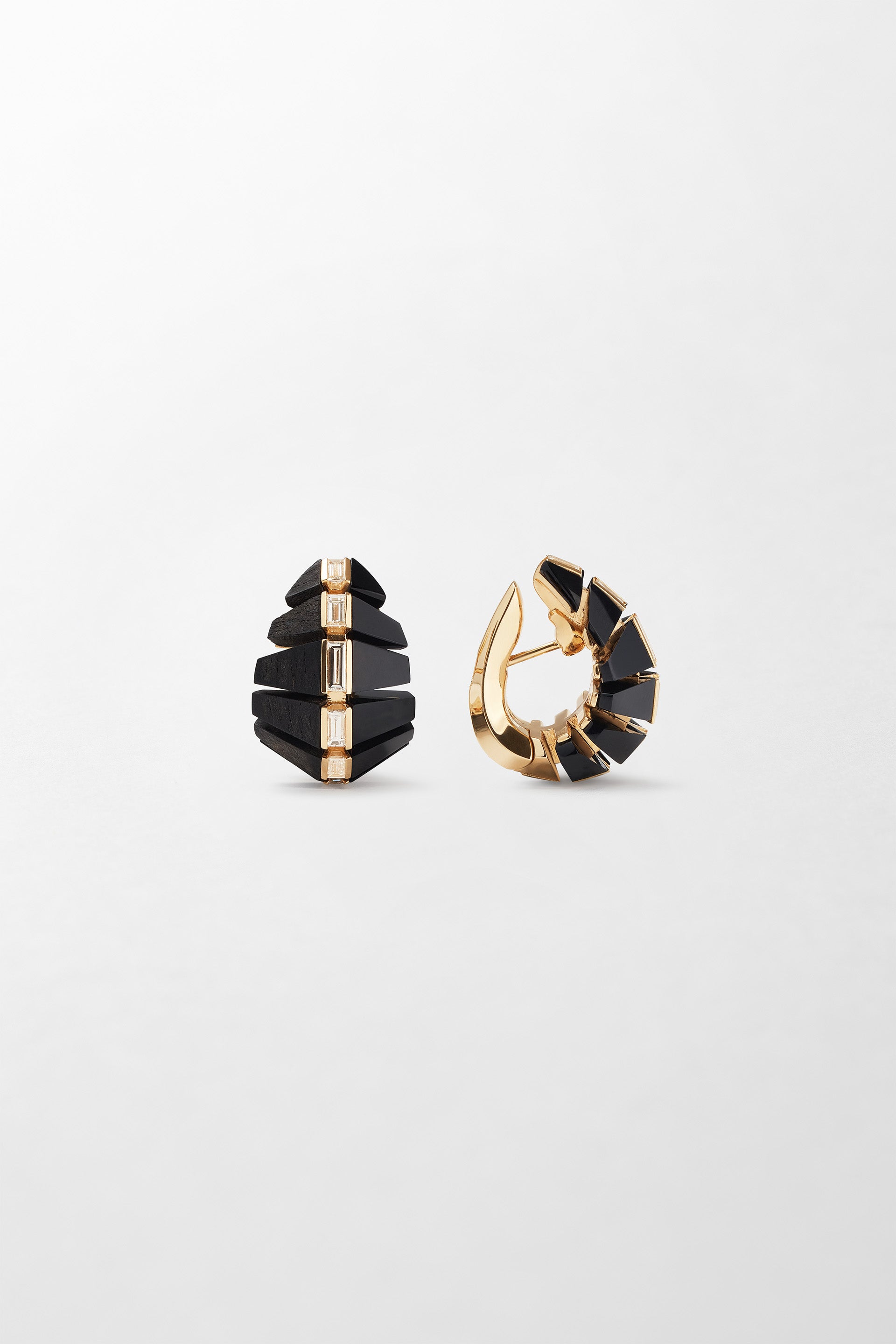 18k yellow gold, set with onyx, Ebony and 1.42 carats of baguette cut diamonds.