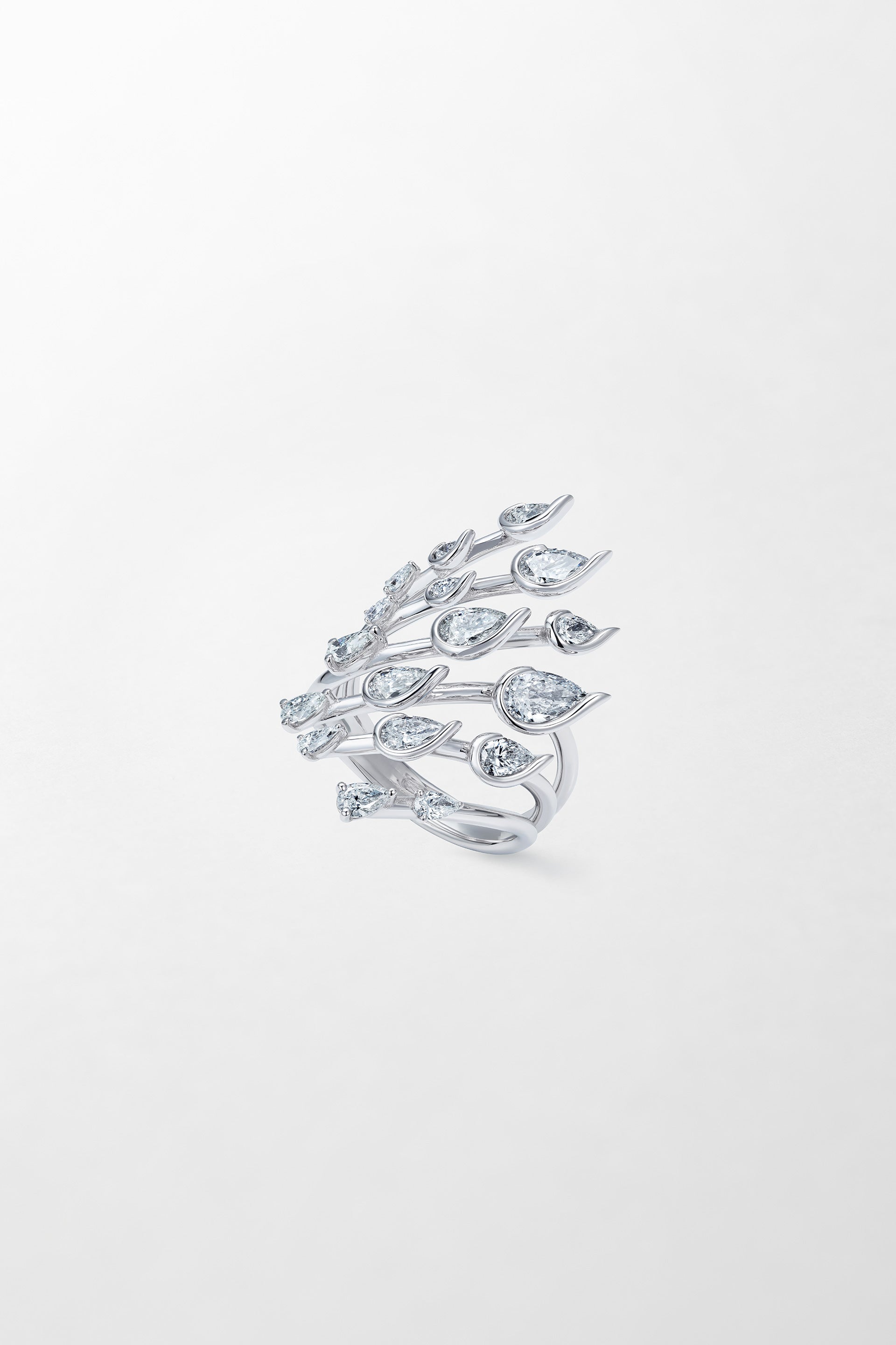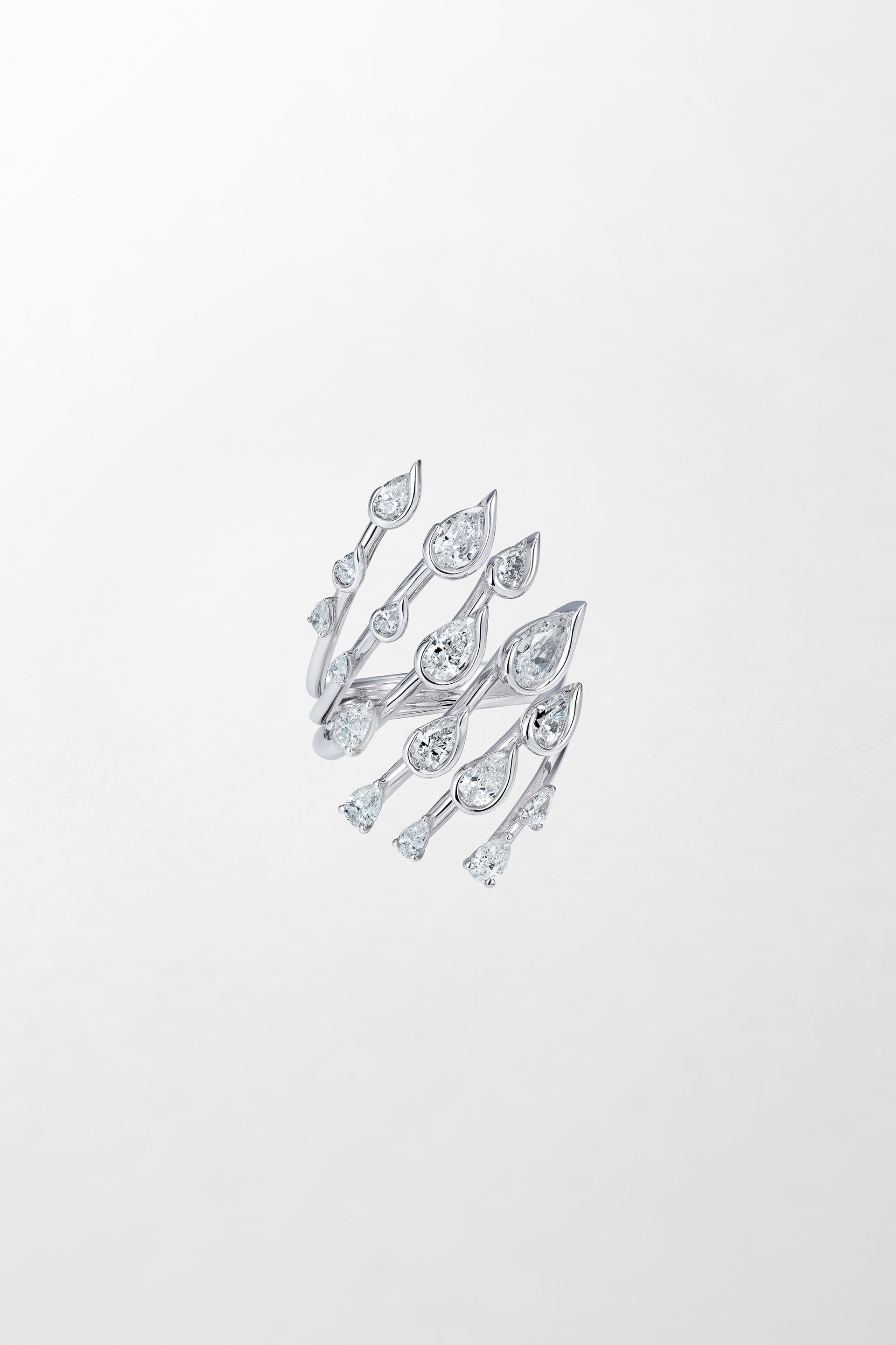 Crafted in 18k white gold and set with 2.16 carats of pear cut diamonds