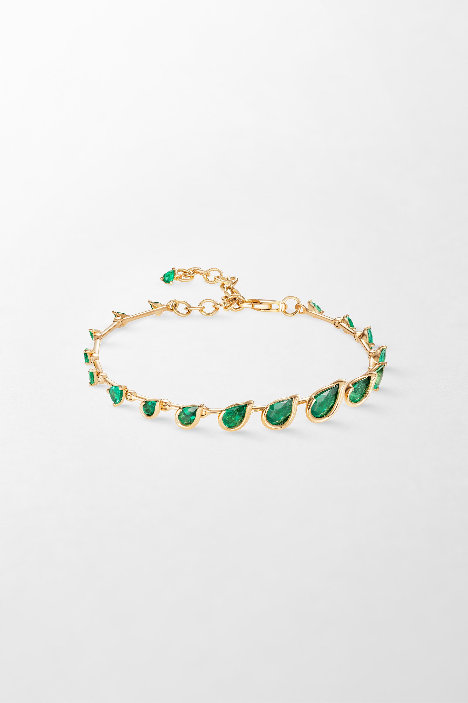 Crafted in 18k yellow gold and set with pear cut emeralds.