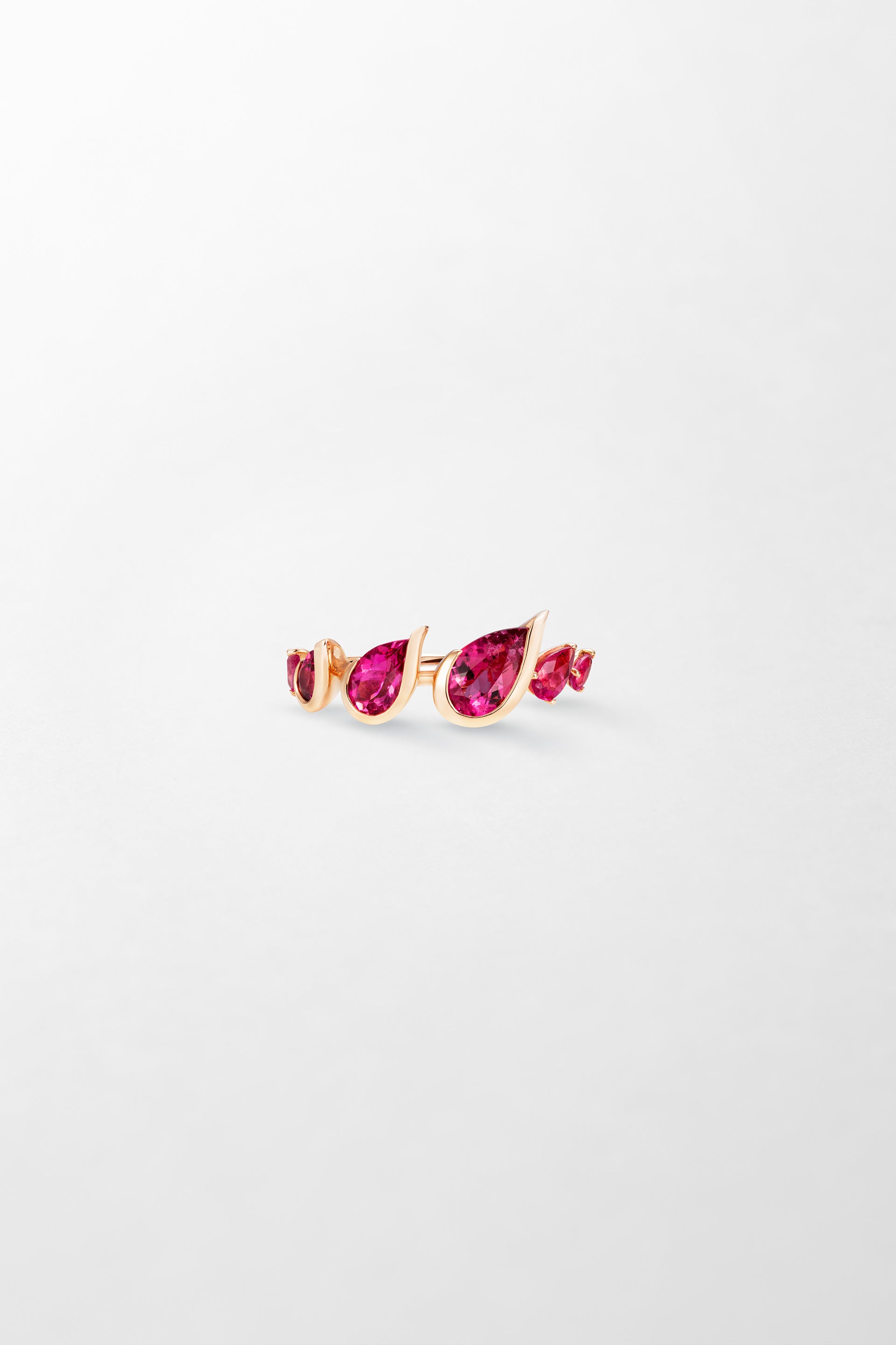 Crafted in 18k rose gold and set with pear cut rubellite.
