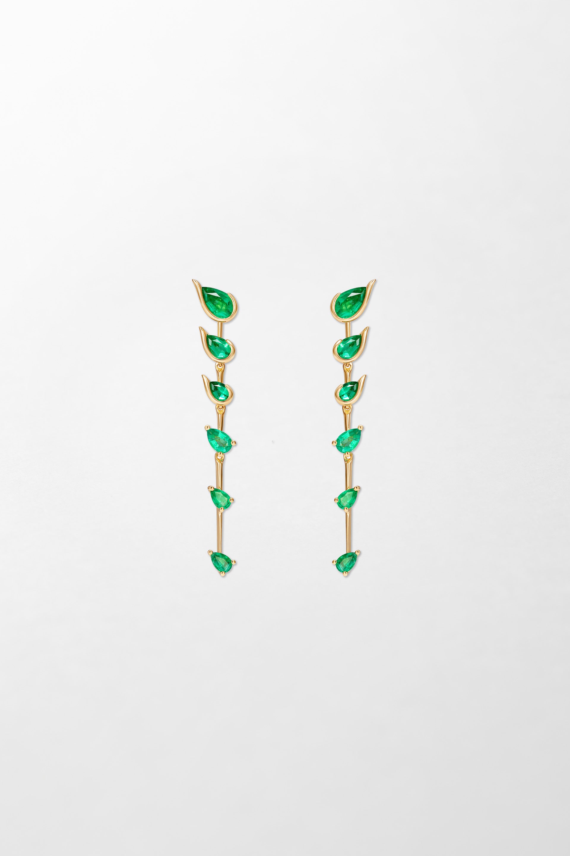 Crafted in 18k yellow gold and set with pear cut emeralds.