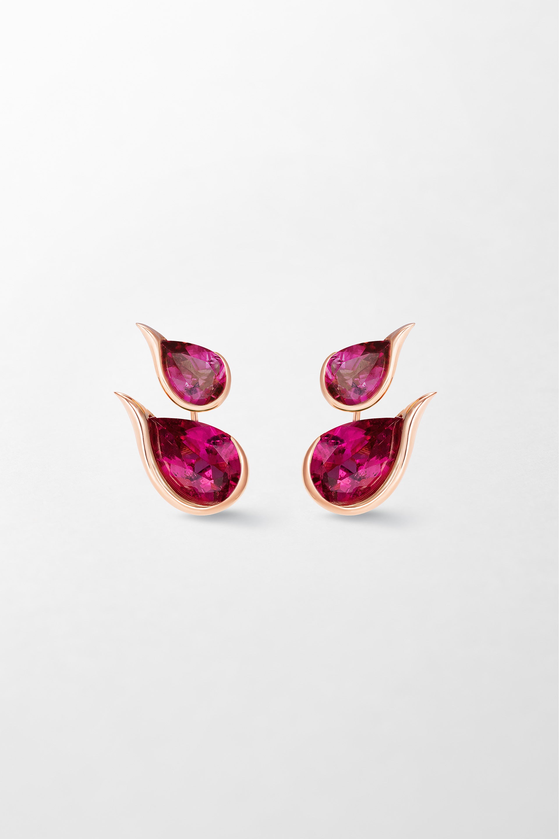 Crafted in 18k rose gold and set with pear cut rubellite.