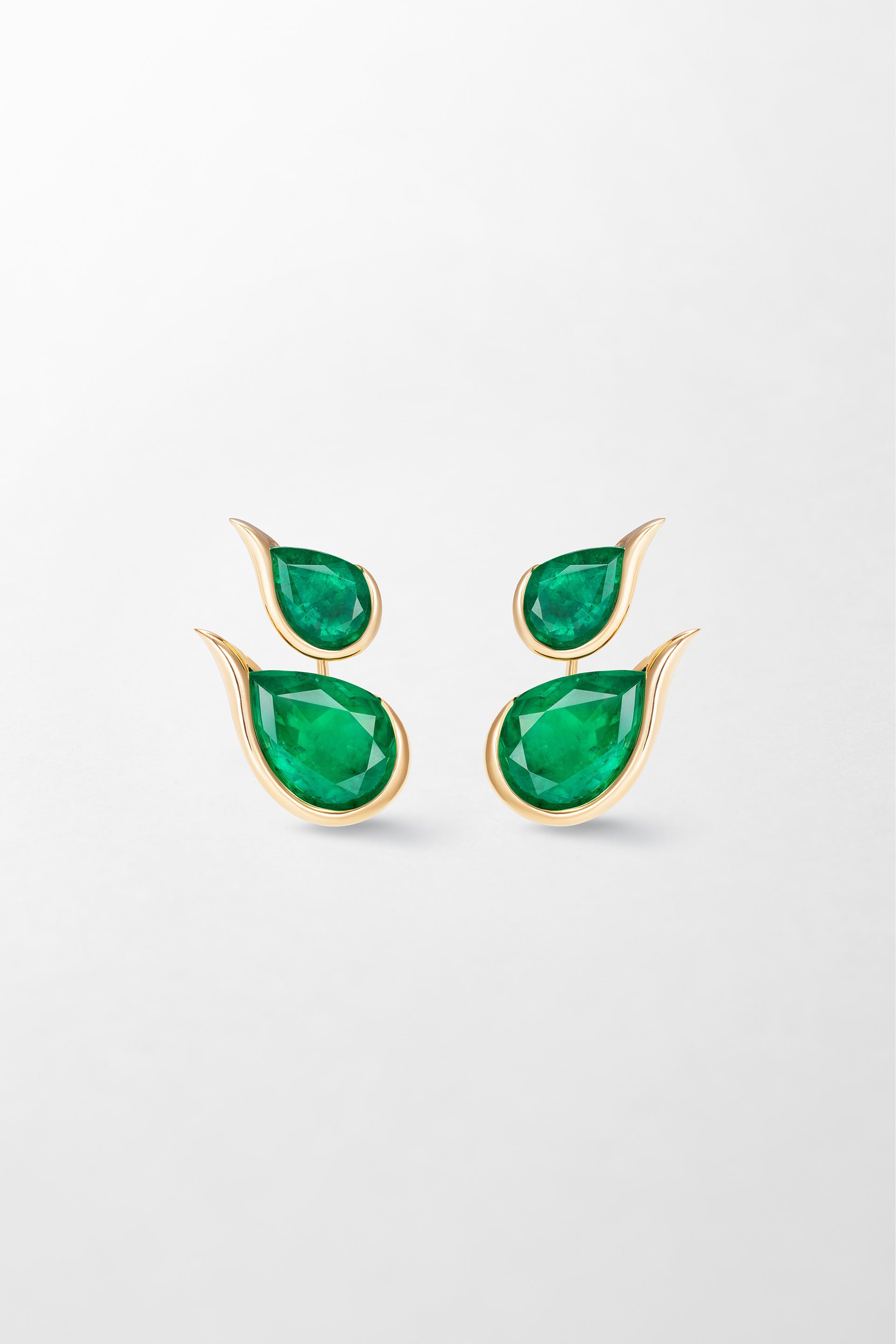 Crafted in 18k yellow gold and set with pear cut emerald.