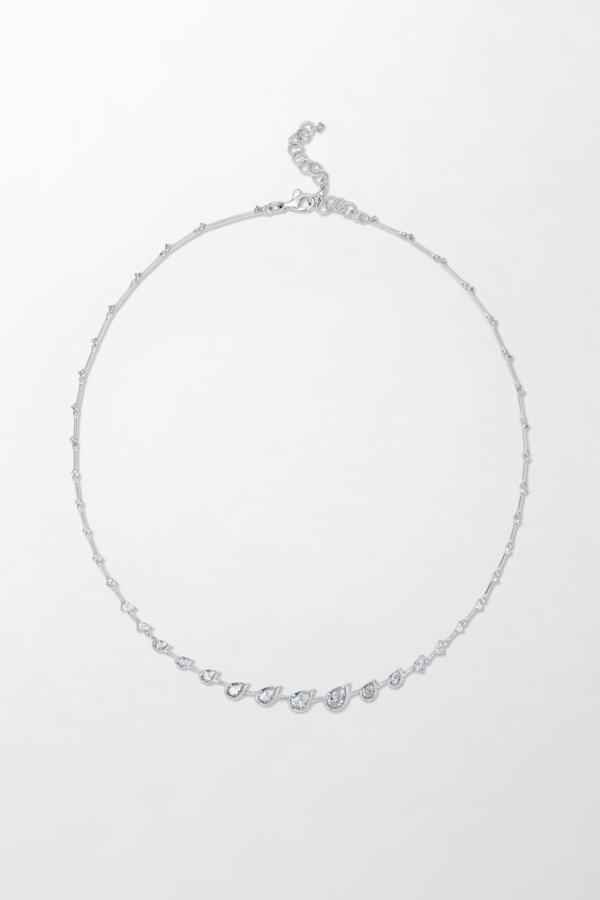 Crafted in 18k white gold and set with 4.07 carats of pear cut diamonds.