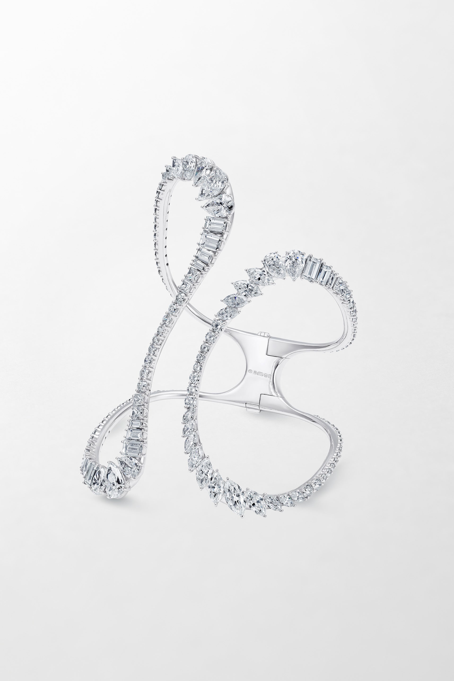 Crafted in 18k white gold and set with a mix of brilliant, oval, marquise, baguette and pear cut diamonds totalling approximately in 27.15 carats.