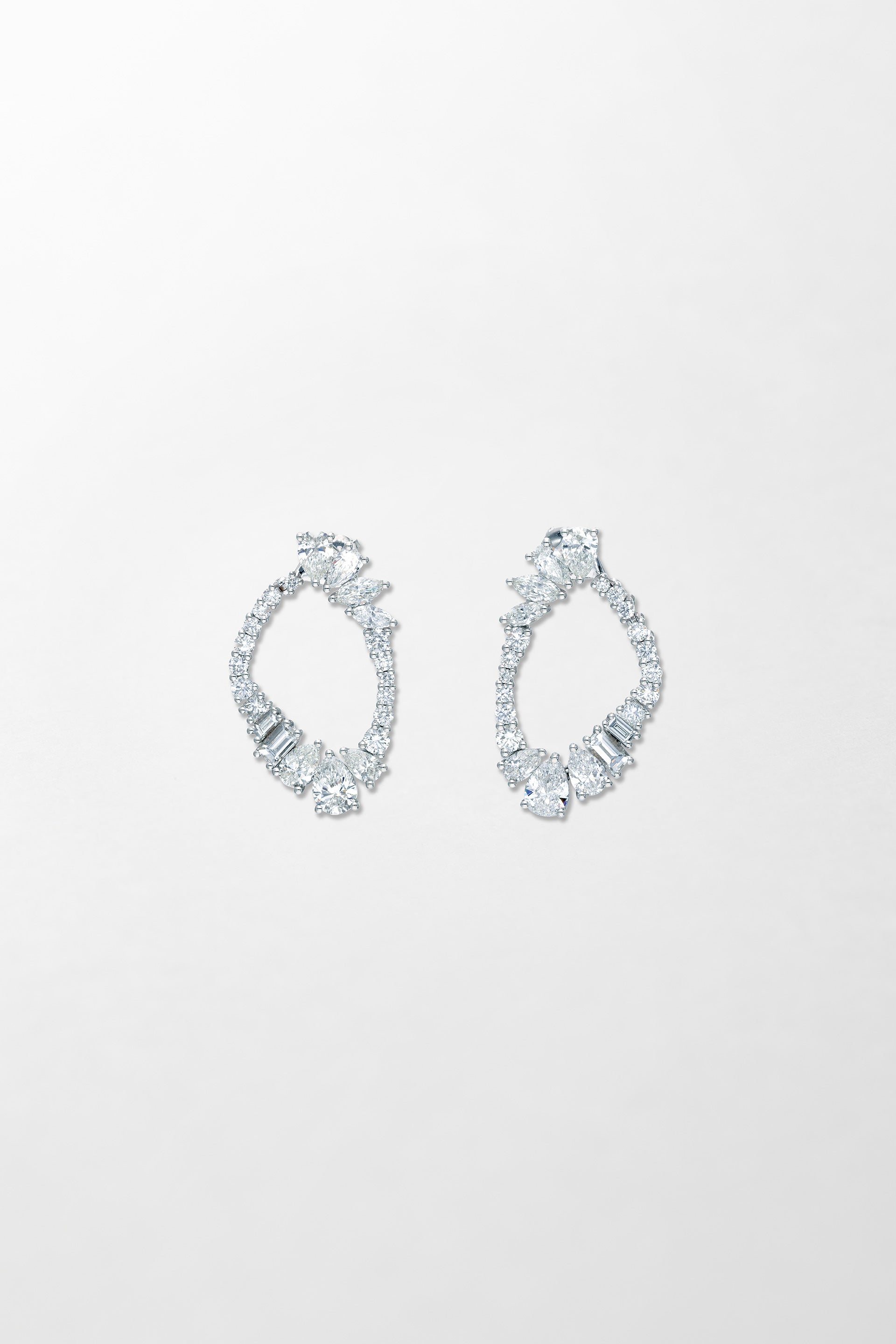 Crafted in 18k white gold and set with a mix of brilliant, oval, marquise, baguette and pear cut diamonds totalling approximately in 6.35 carats.