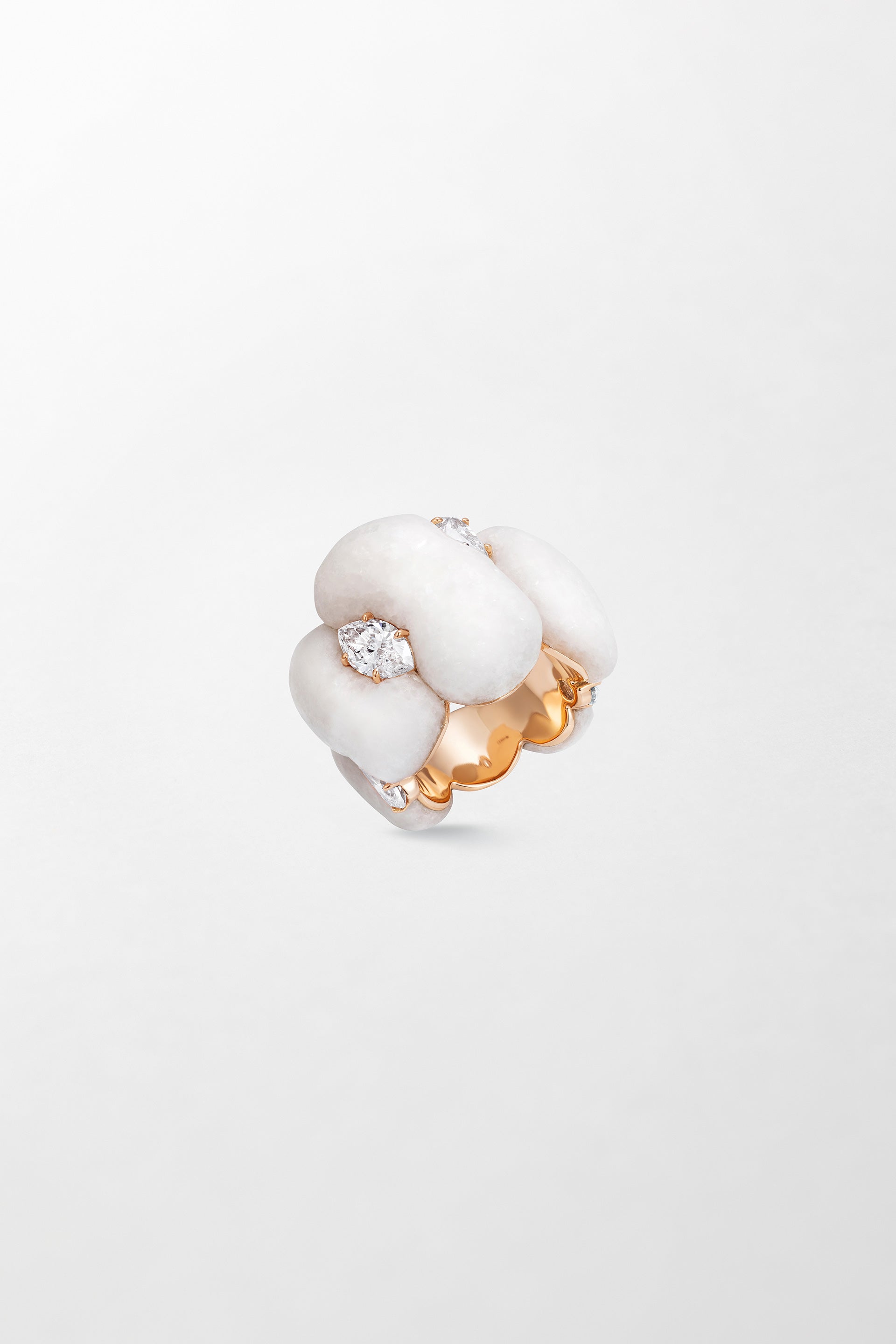 Crafted in 18k rose gold, set with hand-carved marble and 2.57 carats of pear-cut diamonds.