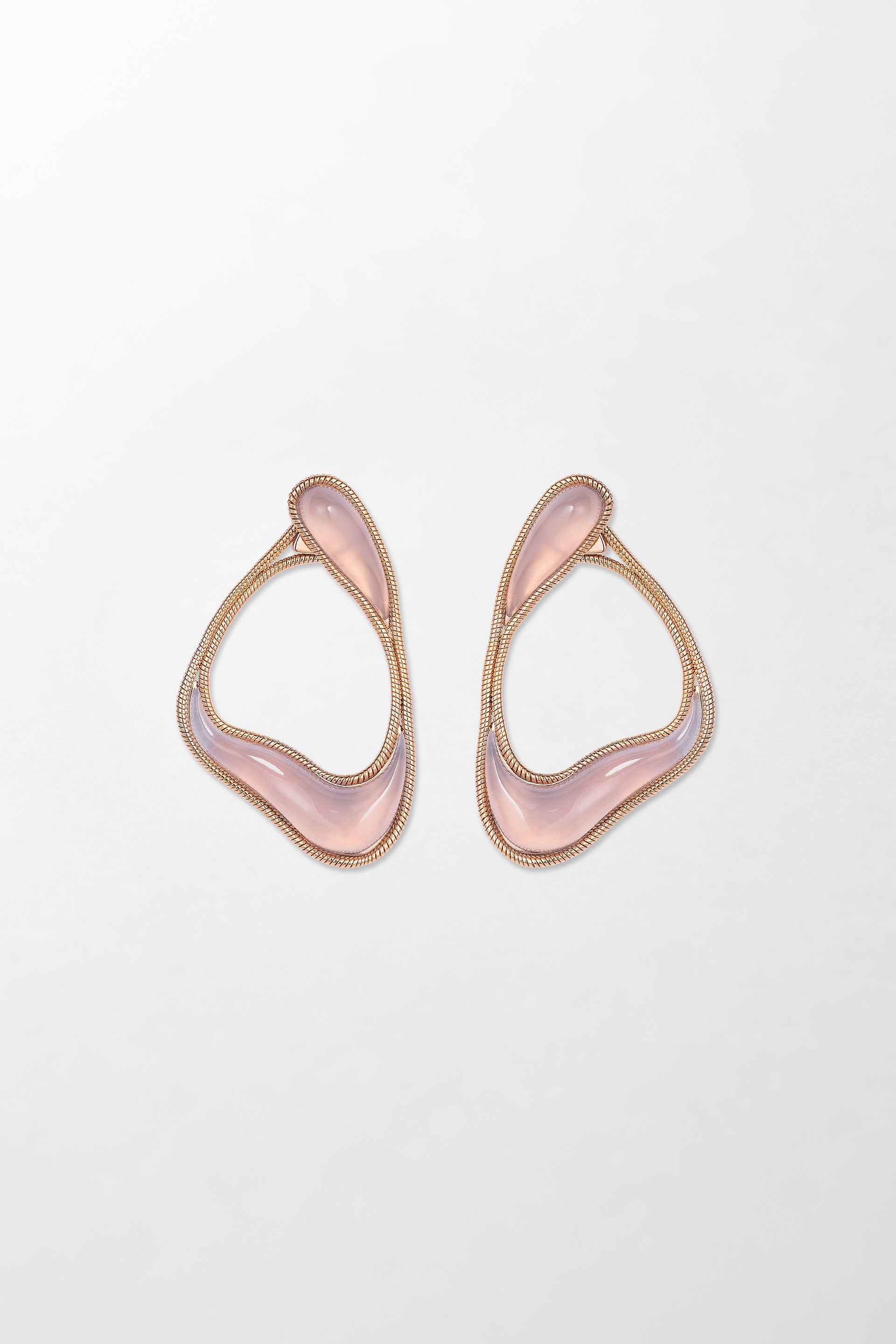 Crafted in 18k rose gold with hand-carved chalcedony.