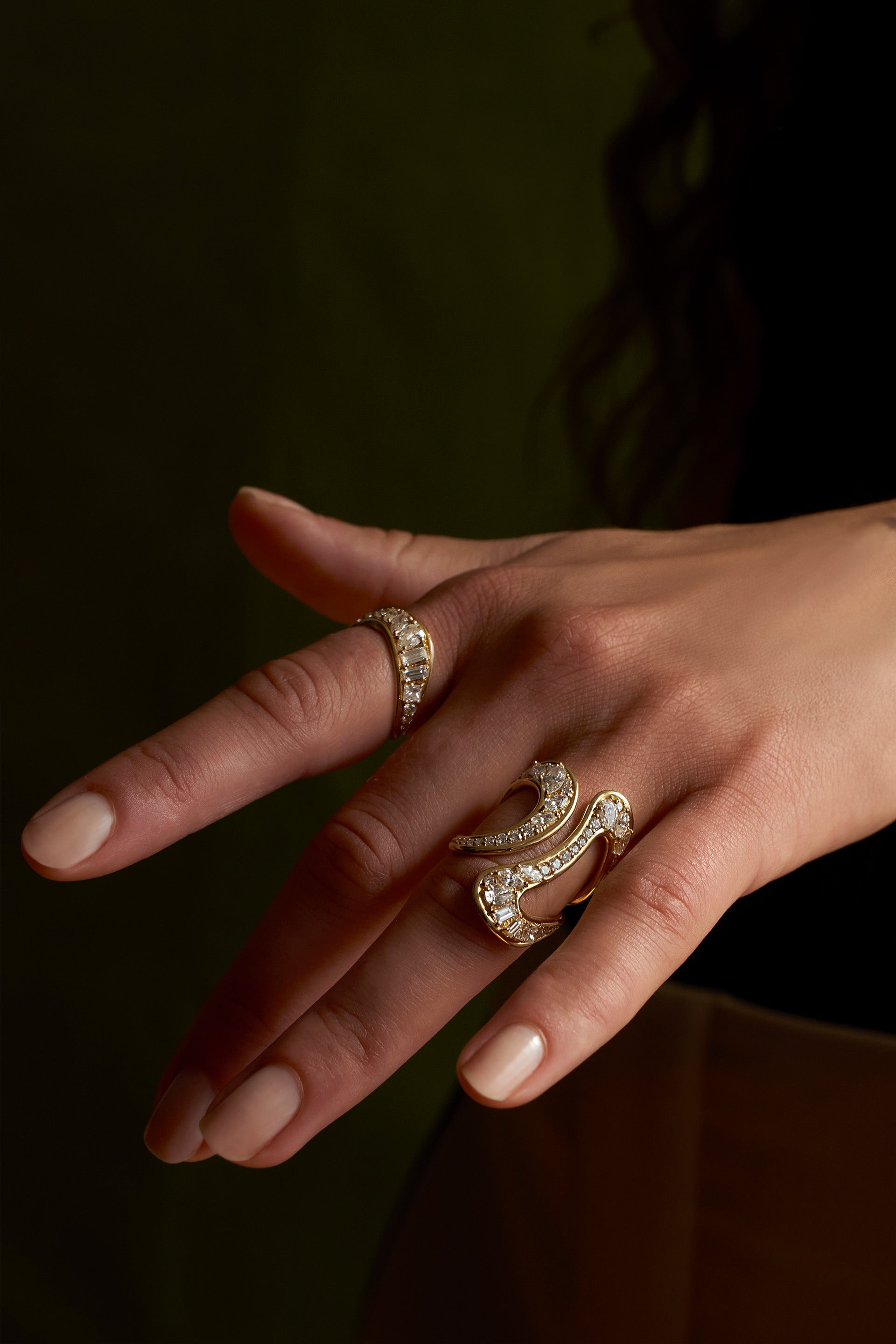Inspired by the fluid movements of water in a stream, this collection speaks to the contours of the body.