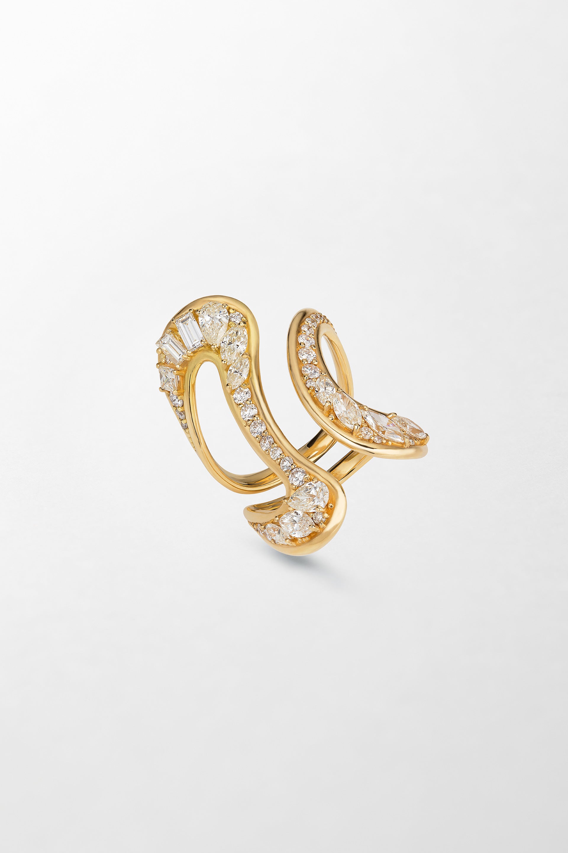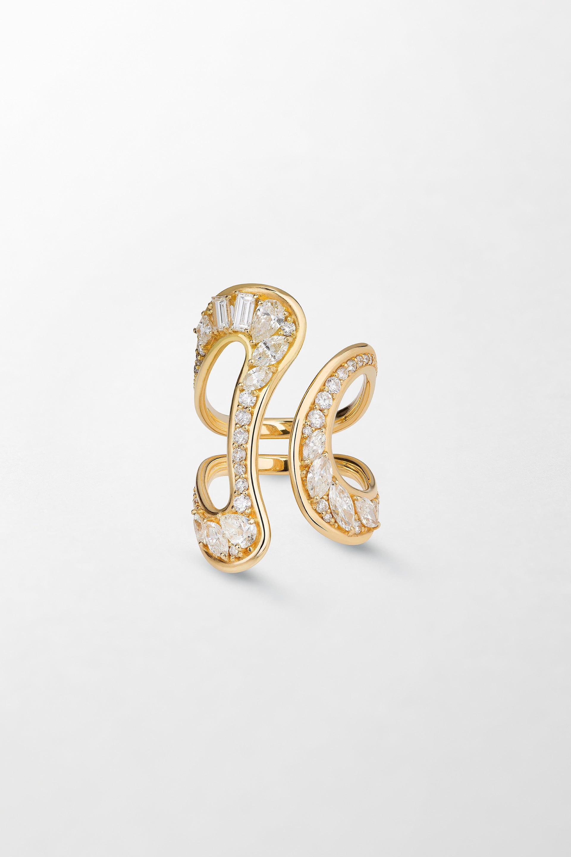 Crafted in 18k yellow gold and set with brilliant, oval, marquise, baguette and pear cut diamonds totalling approximately 2.58 carats.