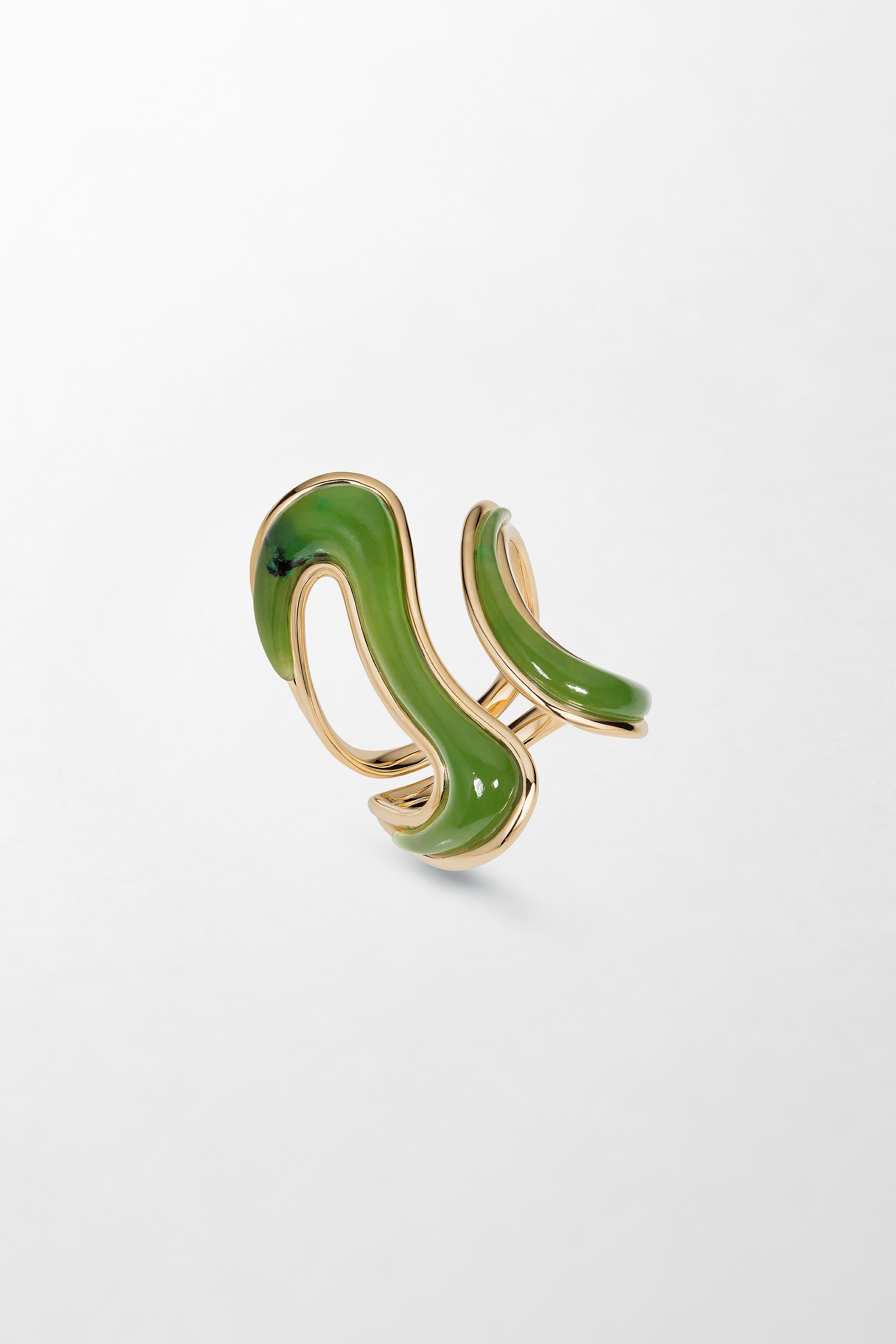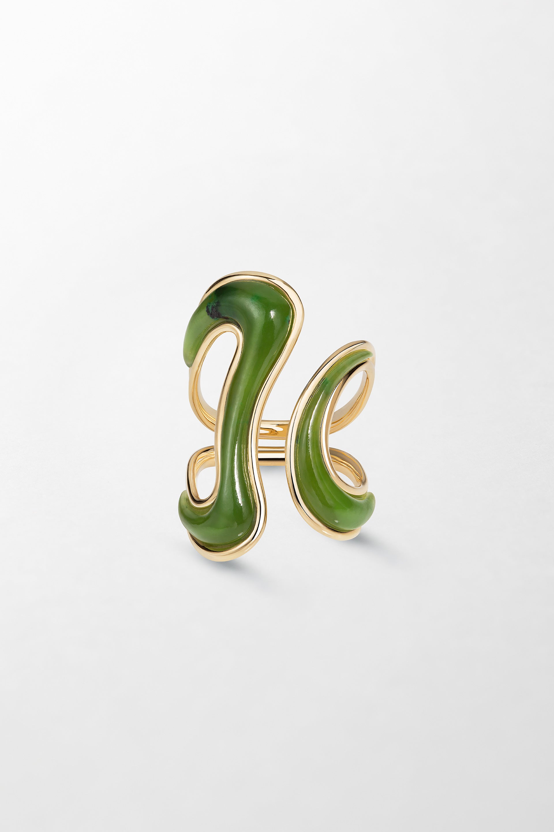 Crafted in 18k yellow gold with hand-carved nephrite jade.