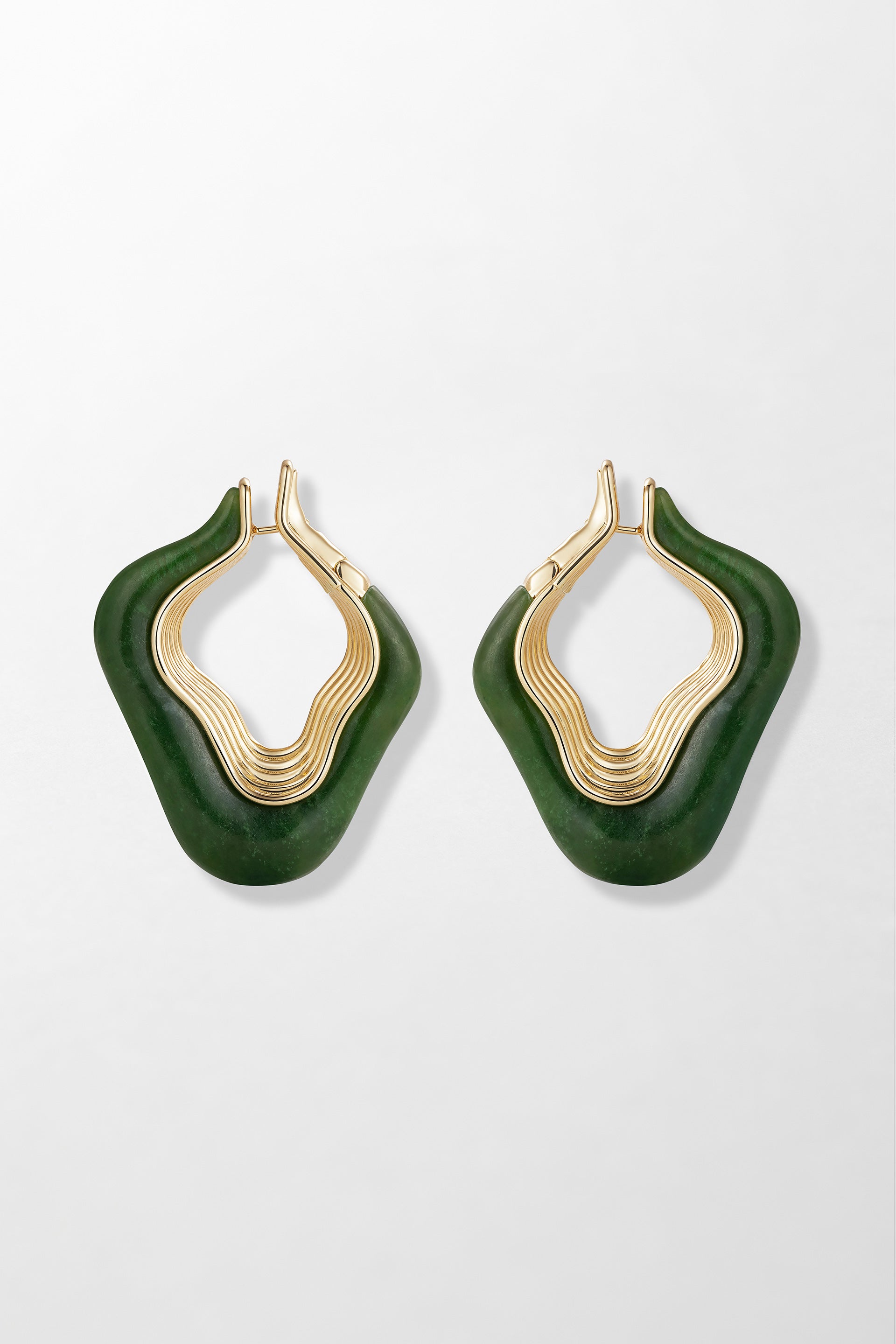 Crafted in 18k yellow gold and set with hand-carved nephrite jade.