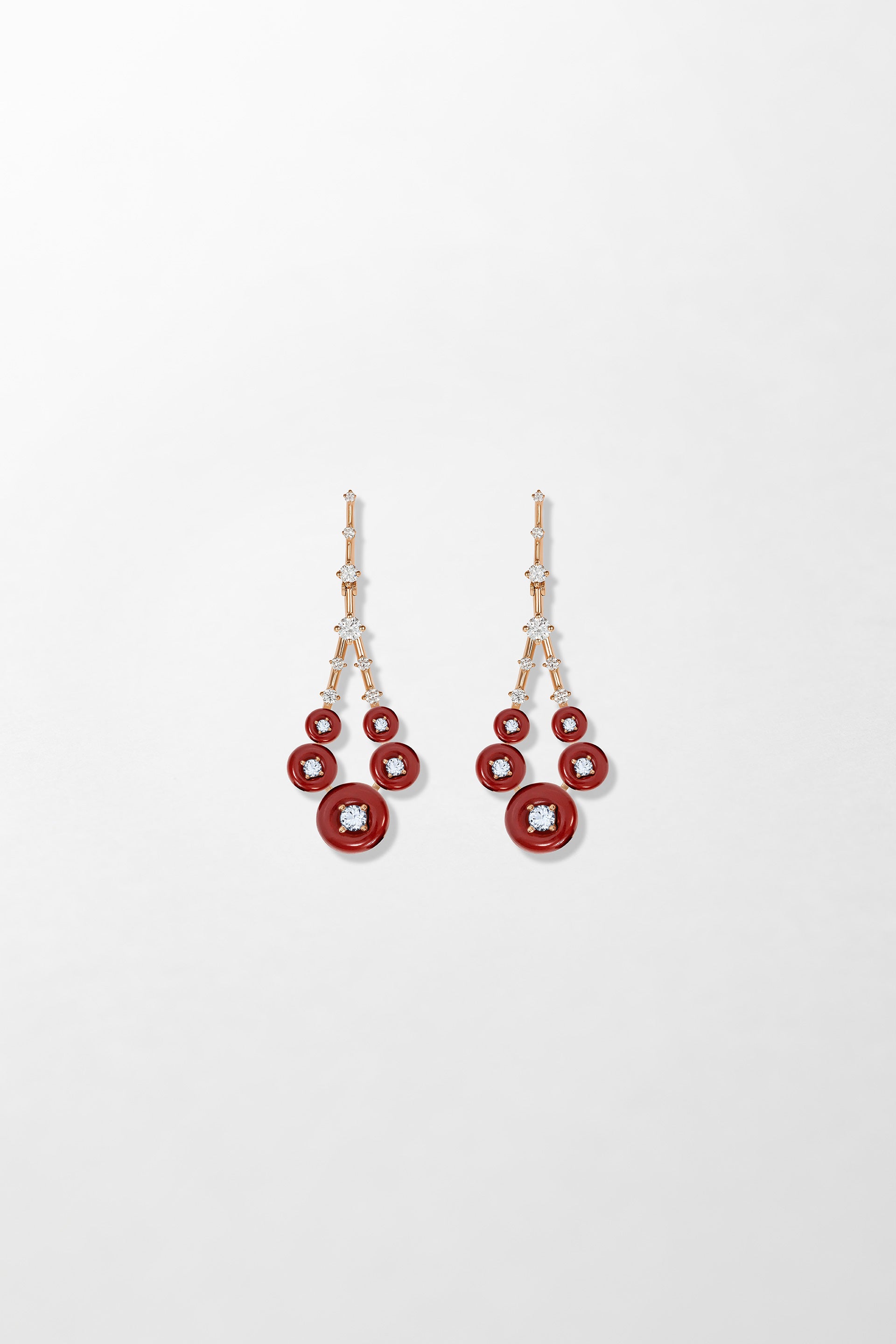Crafted in 18k rose gold and set with 0.85 carats of brilliant cut diamonds with hand-carved jasper.