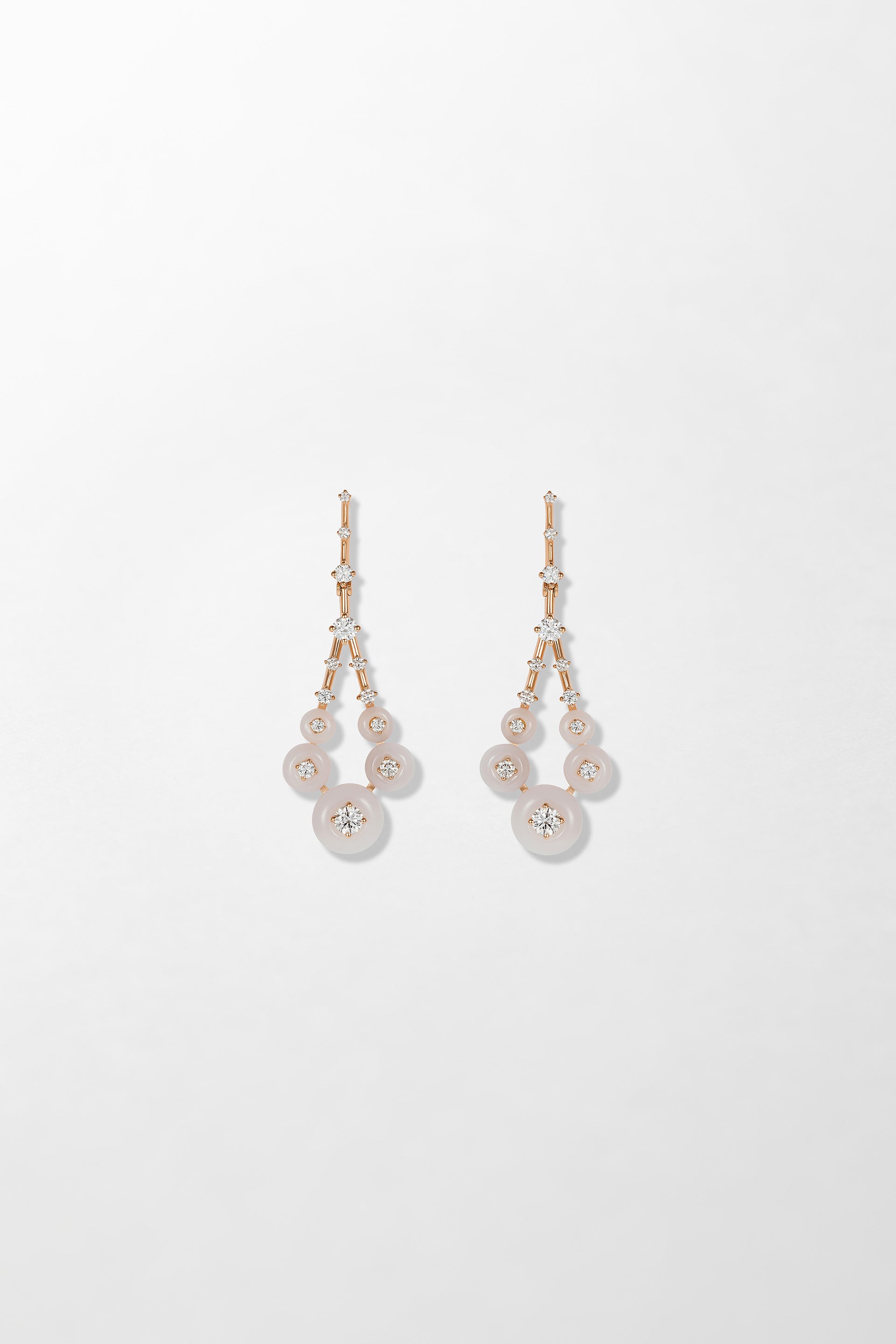 Crafted in 18k rose gold and set with 0.85 carats of brilliant cut diamonds with hand-carved pink opal.
