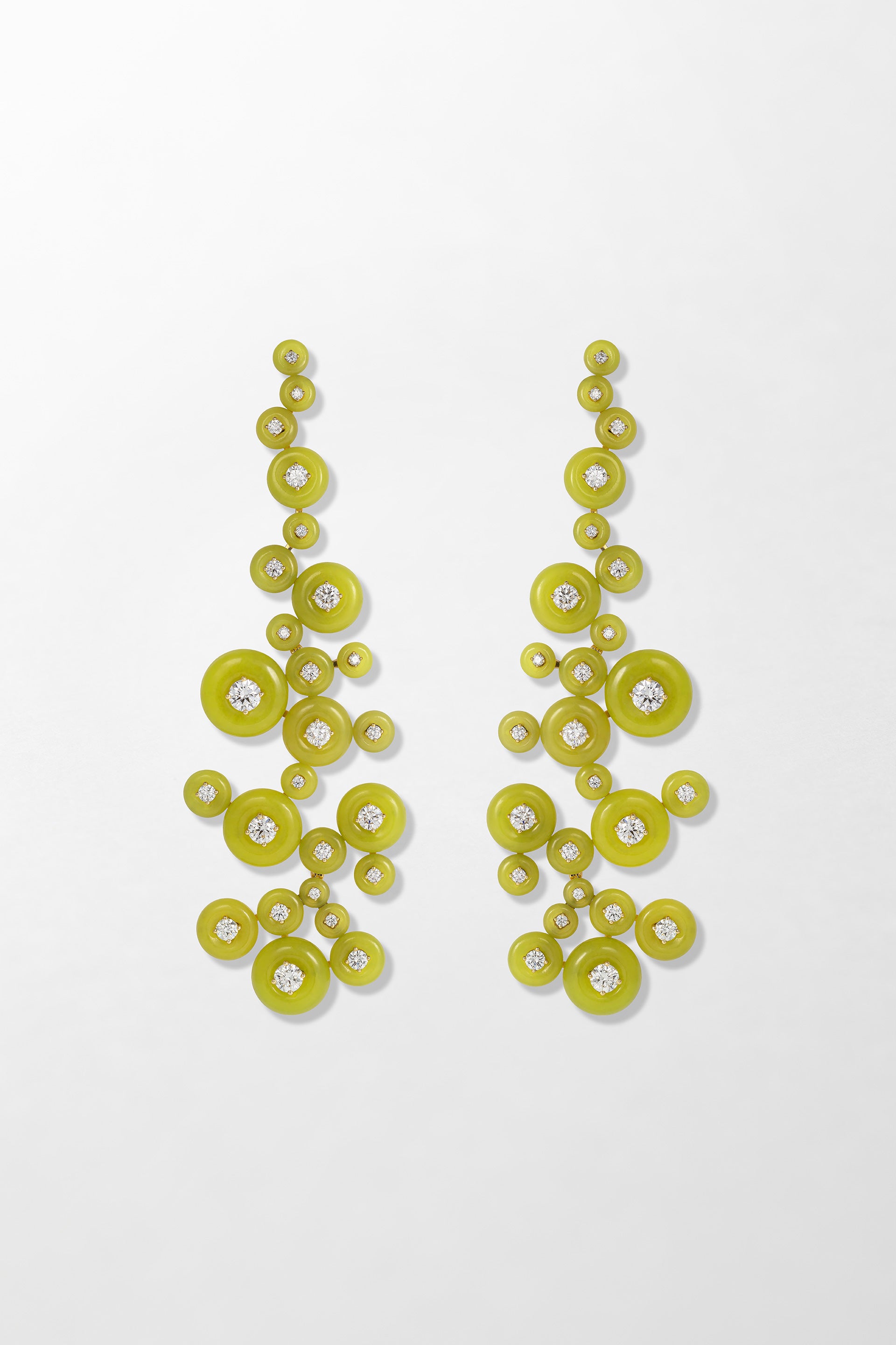 Crafted in 18k yellow gold and set with 4.70 carats of brilliant cut diamonds with hand-carved serpentine.
