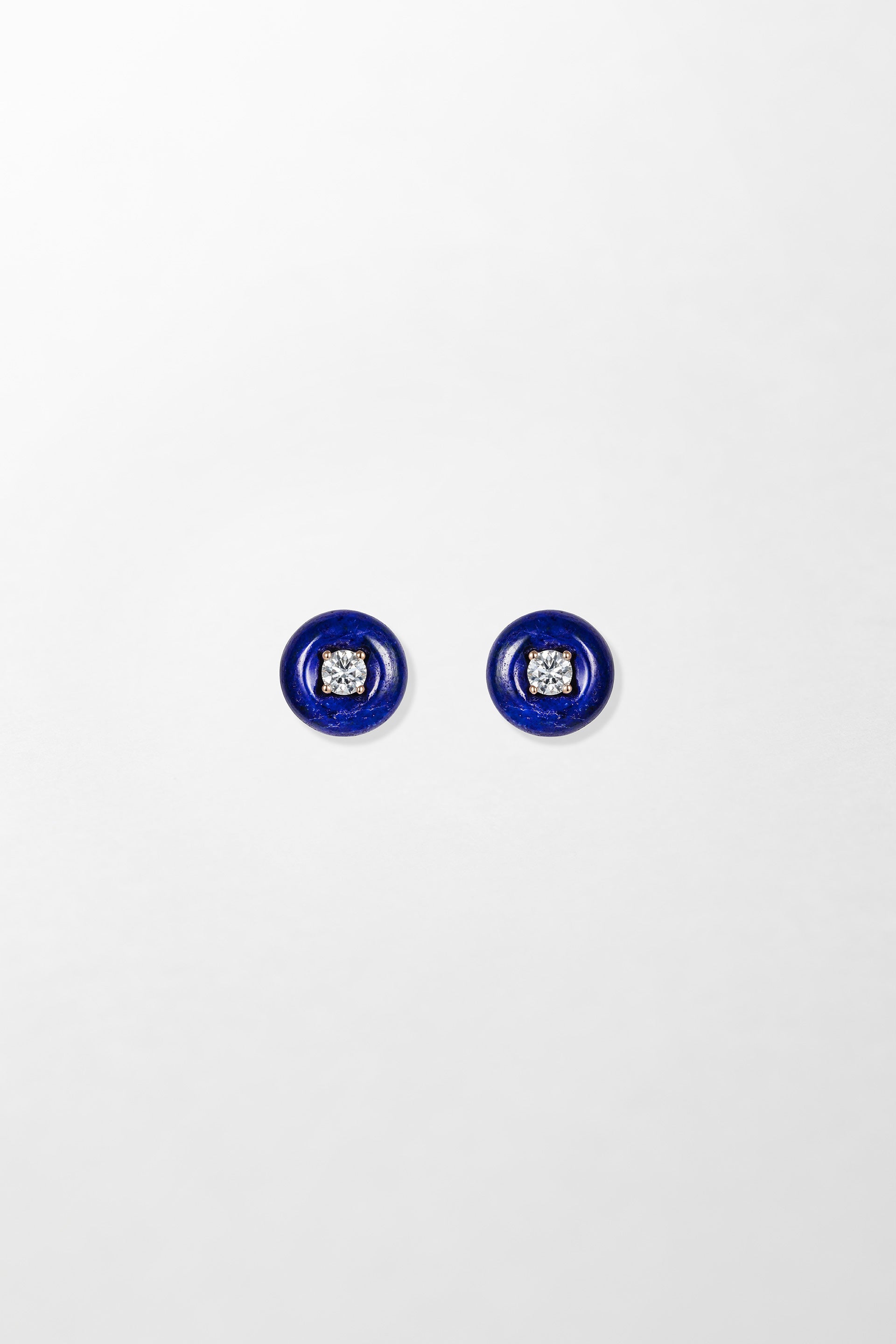 Crafted in 18k rose gold and set with 0.40 carats of brilliant cut diamonds with hand-carved lapis lazuli.