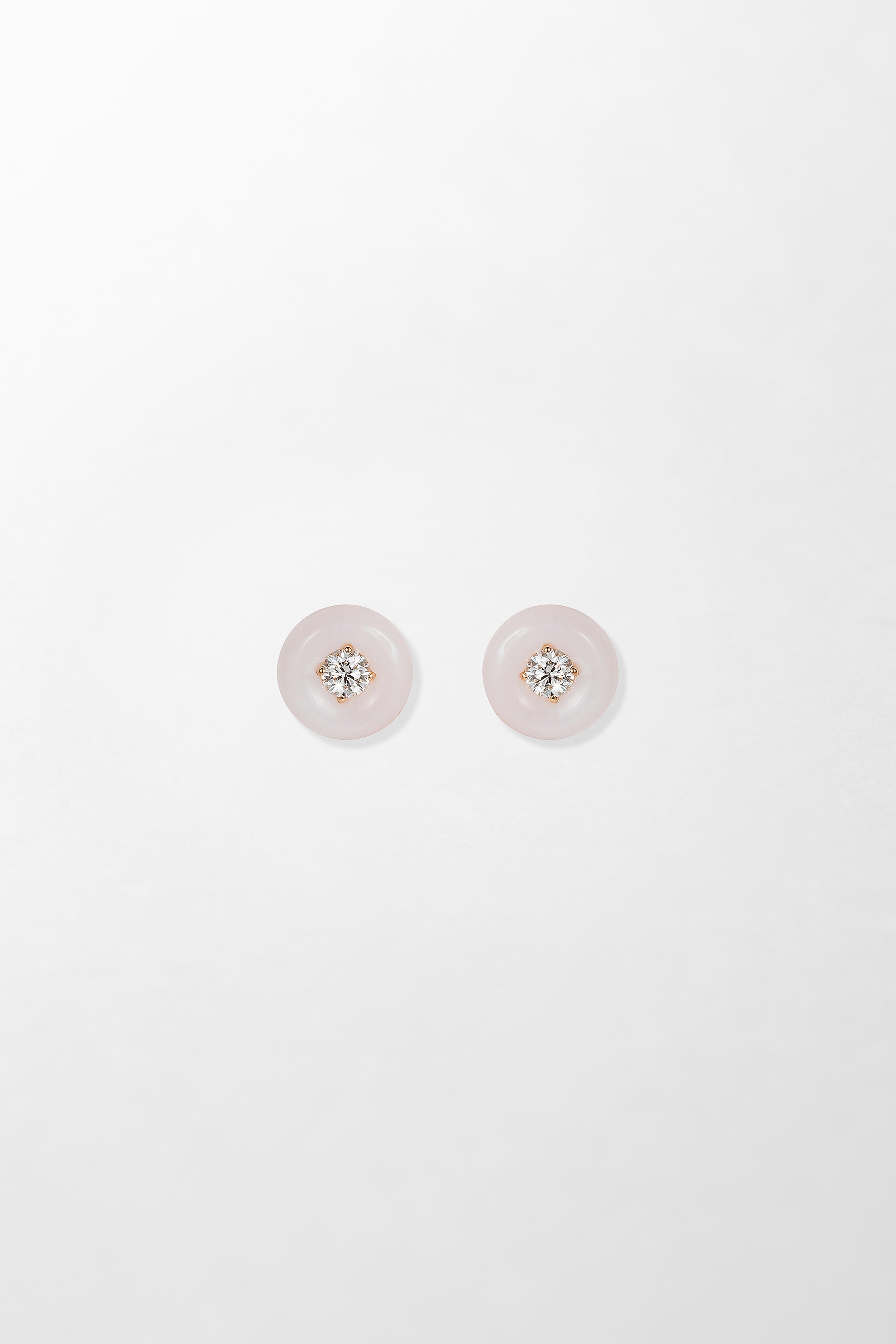 Crafted in 18k rose gold and set with 0.40 carats of brilliant cut diamonds with hand-carved pink opal.