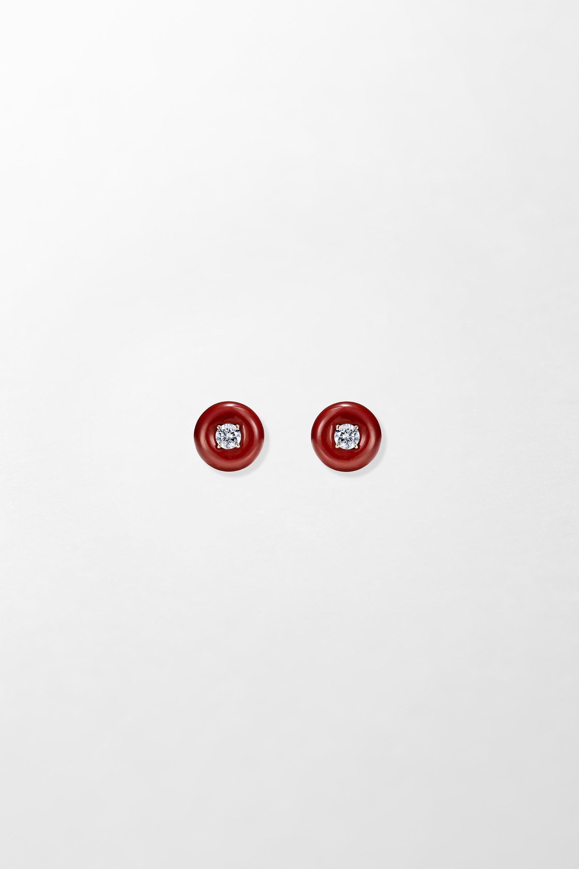 Crafted in 18k rose gold and set with 0.20 carats of brilliant cut diamonds with hand-carved jasper.